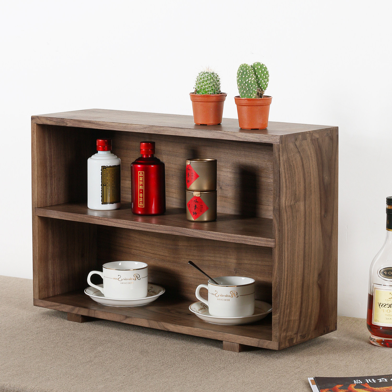Черный ореховый деревянный настольный настольный компьютер многослойный хранение стойка для хранения