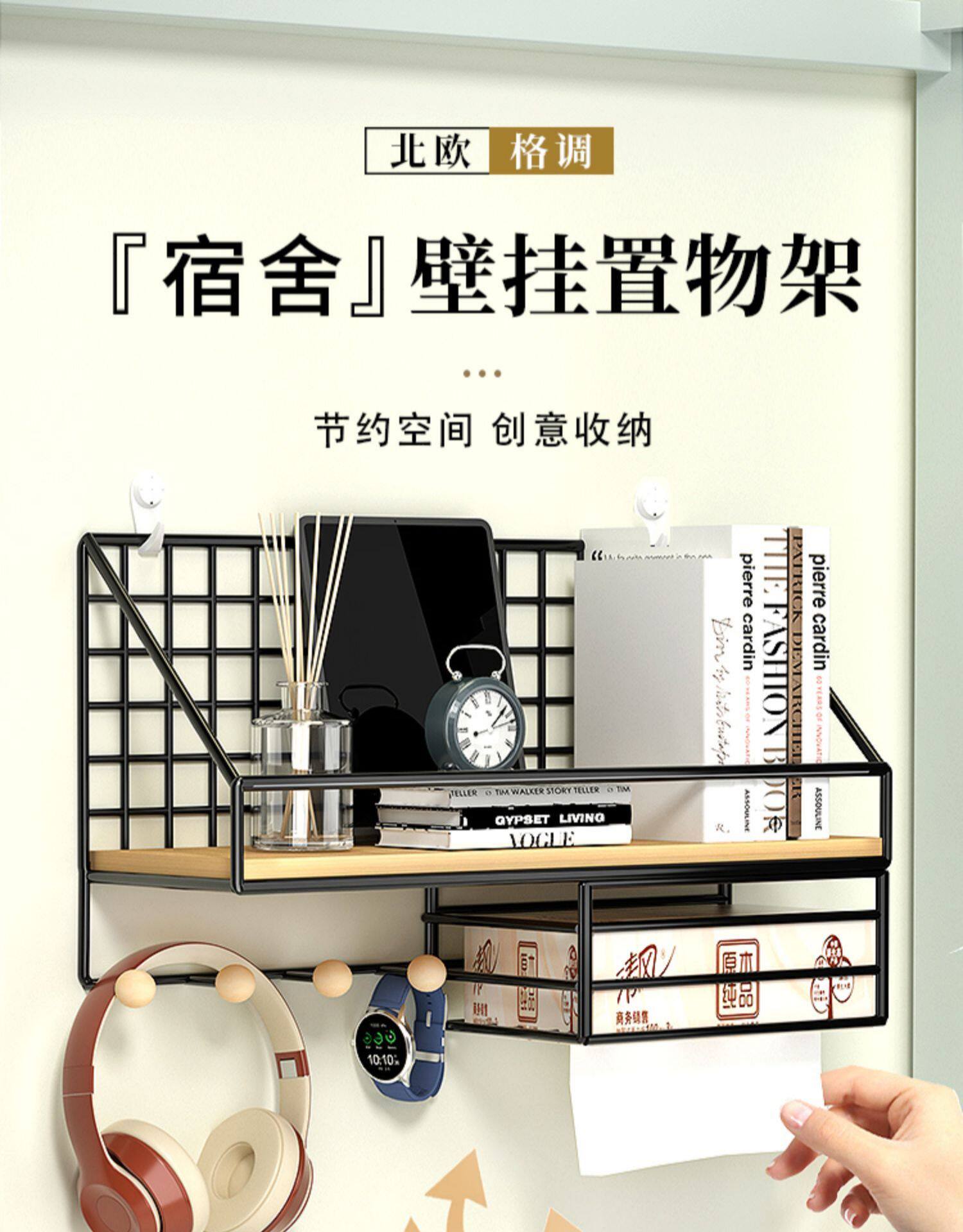 Настенный стеллаж для хранения без перфорации, верхняя койка, артефакт, студенческое общежитие, прикроватная настенная подвесная корзина, полка для хранения в спальне