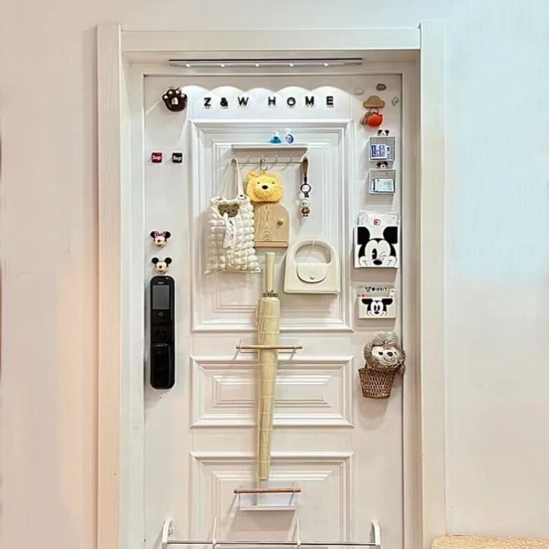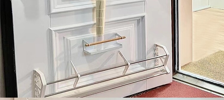 Зонт с длинной ручкой магнитно поглощается и встраивается в декоративную полку для обуви в задней части двери. Задняя полка противоугонной двери удерживает зонтик без ударов.