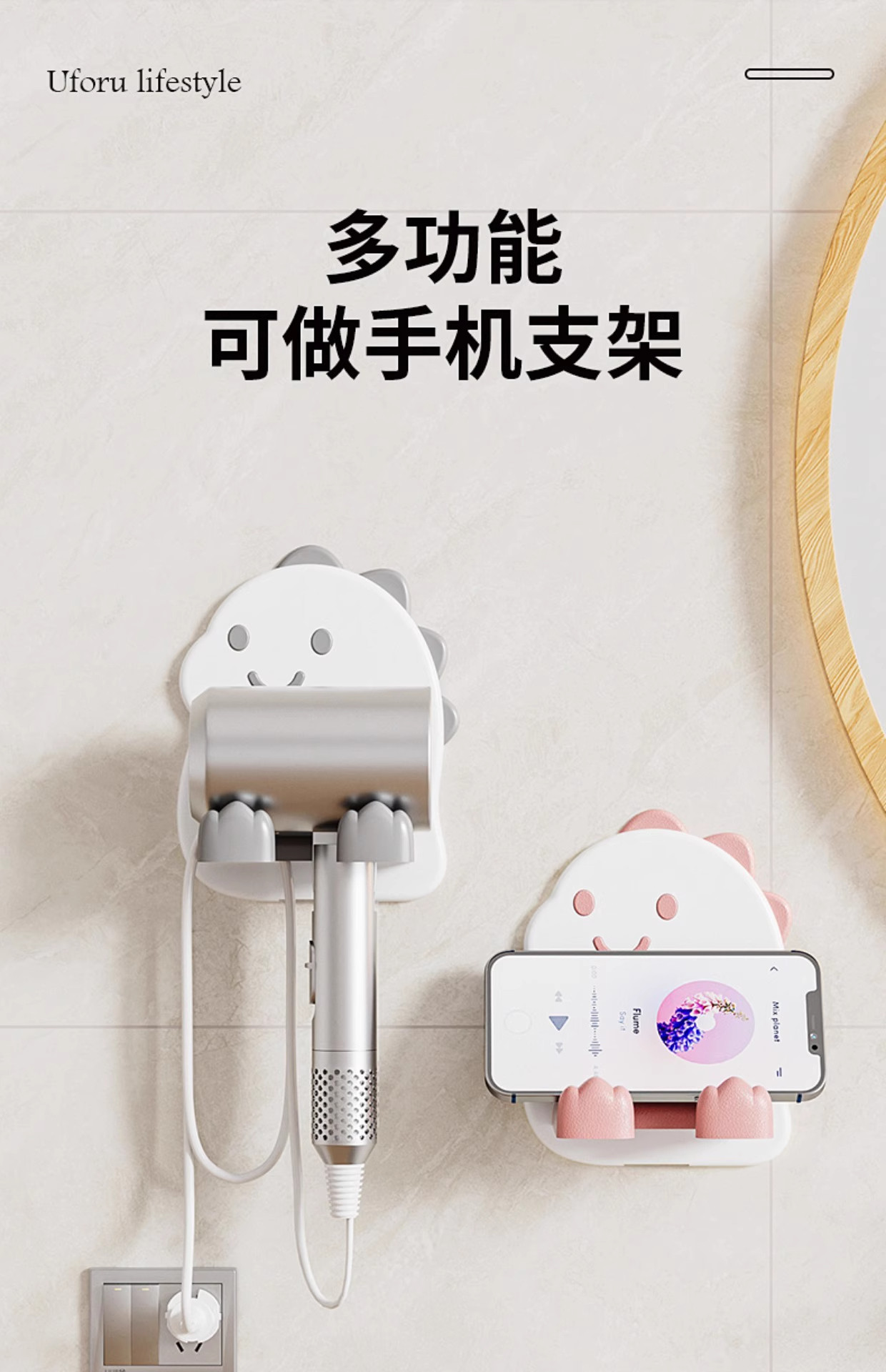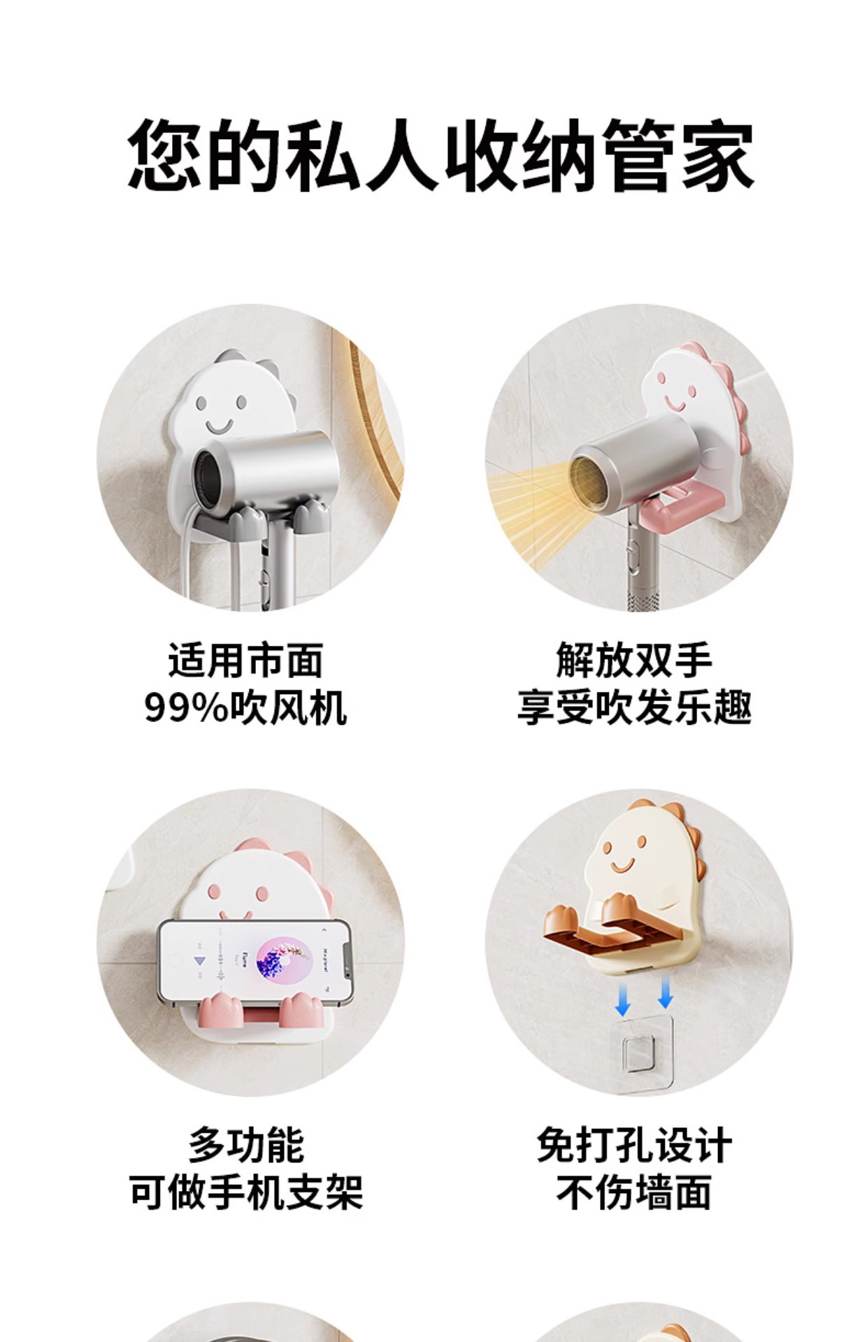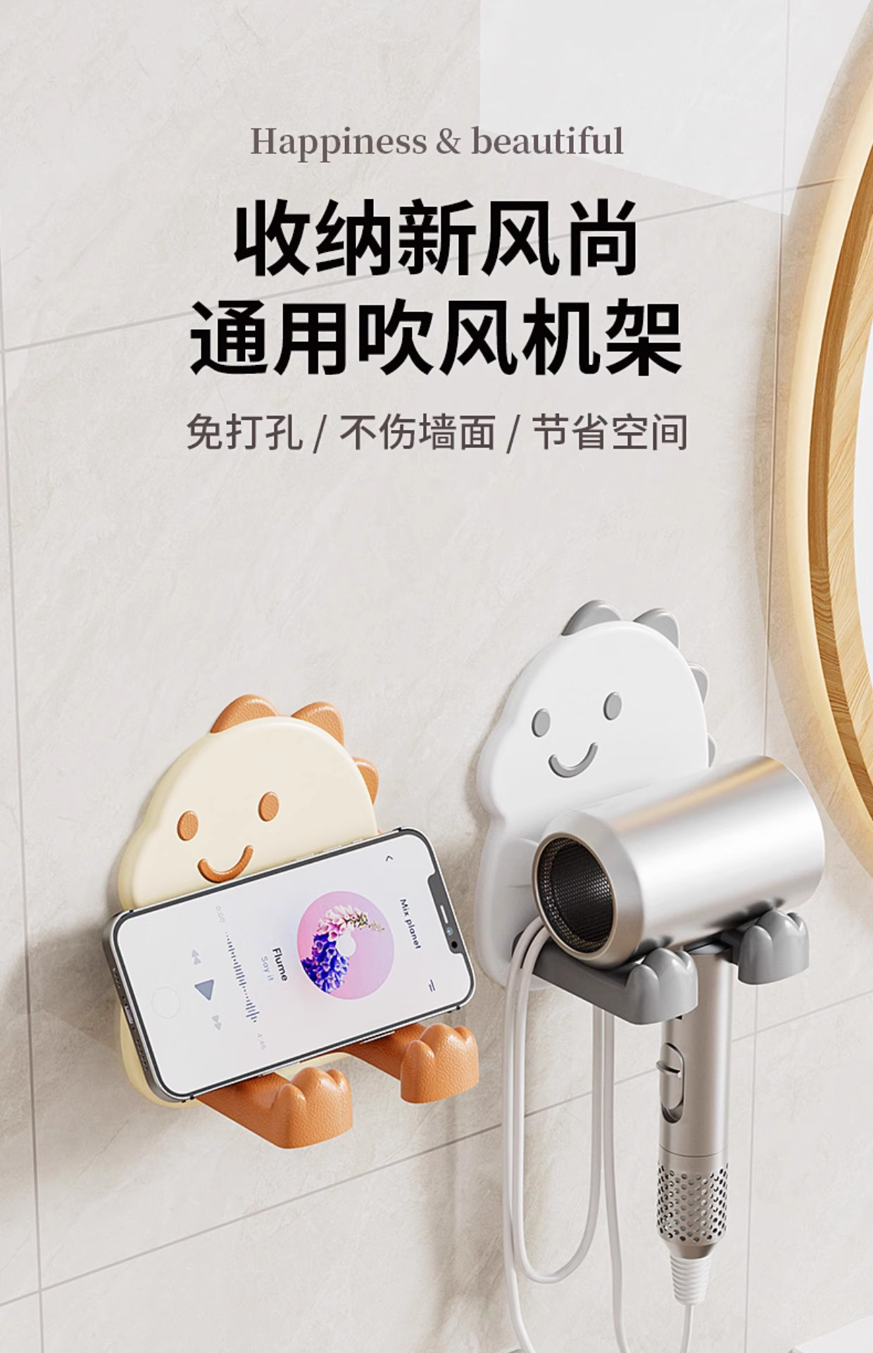 Креативная подставка для фена в виде маленького динозавра, милая настенная стойка для фена для ванной комнаты, гардеробная, домашний фен для хранения
