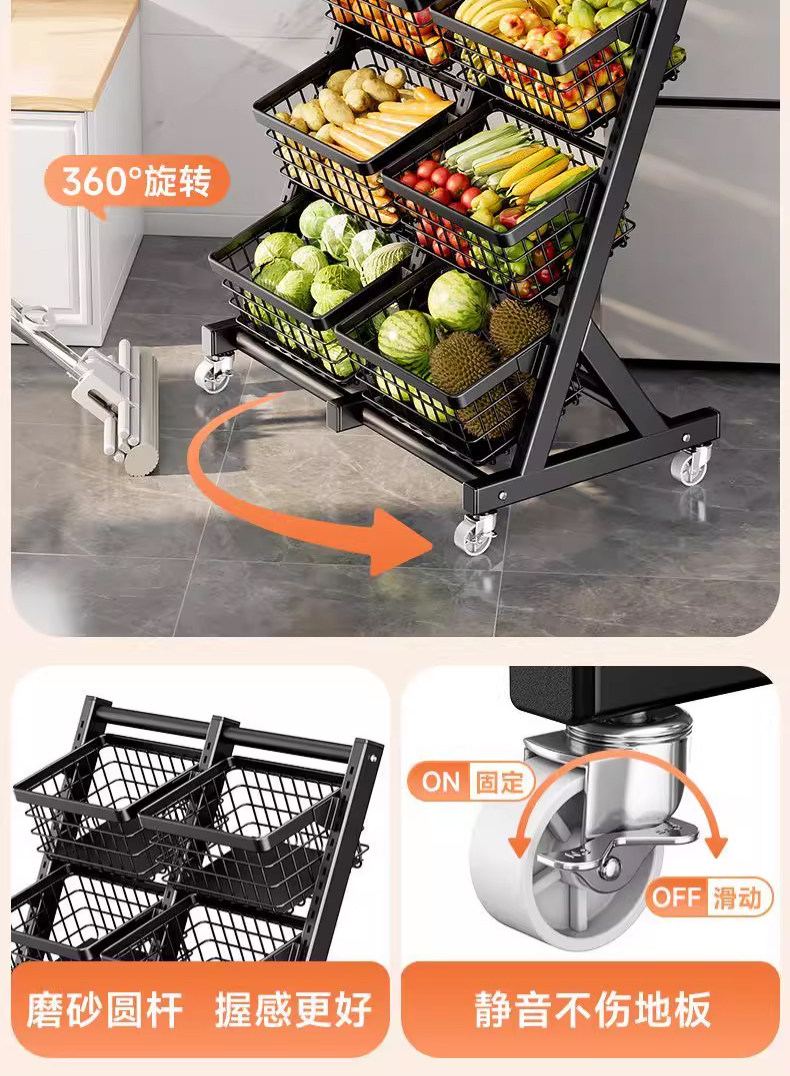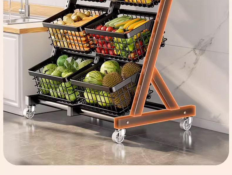 Кухонная стойка, корзина для овощей на колесах, съемная корзина для хранения в гостиной, корзина для закусок, супермаркет, многослойная стойка для фруктов и овощей