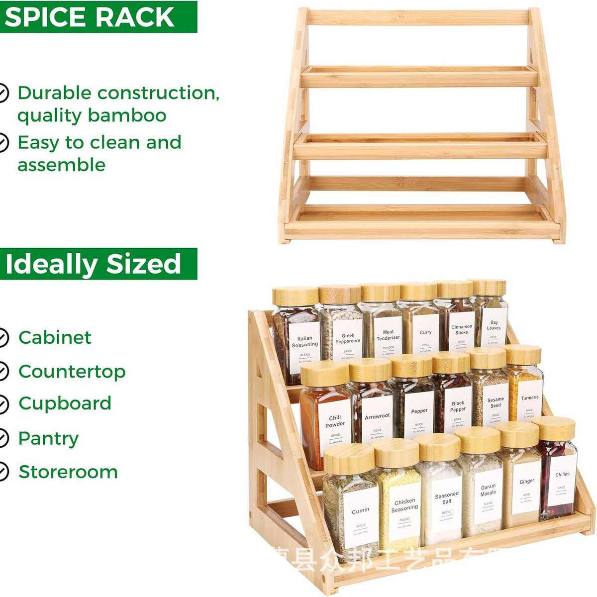 Бамбук ступененный приправы полки домашняя кухонная столешница для специй организует твердое дерево многослойное хранение целая рама