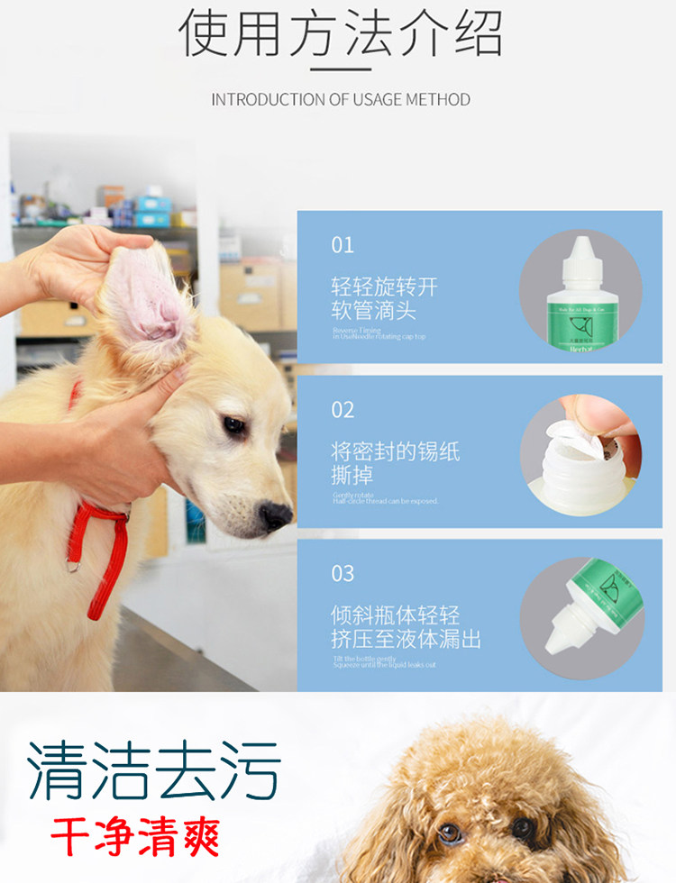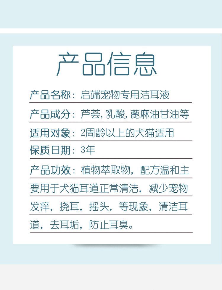 启端 Cidon Pet Cats and Dogs Ушные капли для удаления ушных клещей и ушных каналов для мытья жидкости для животных очистки ушей