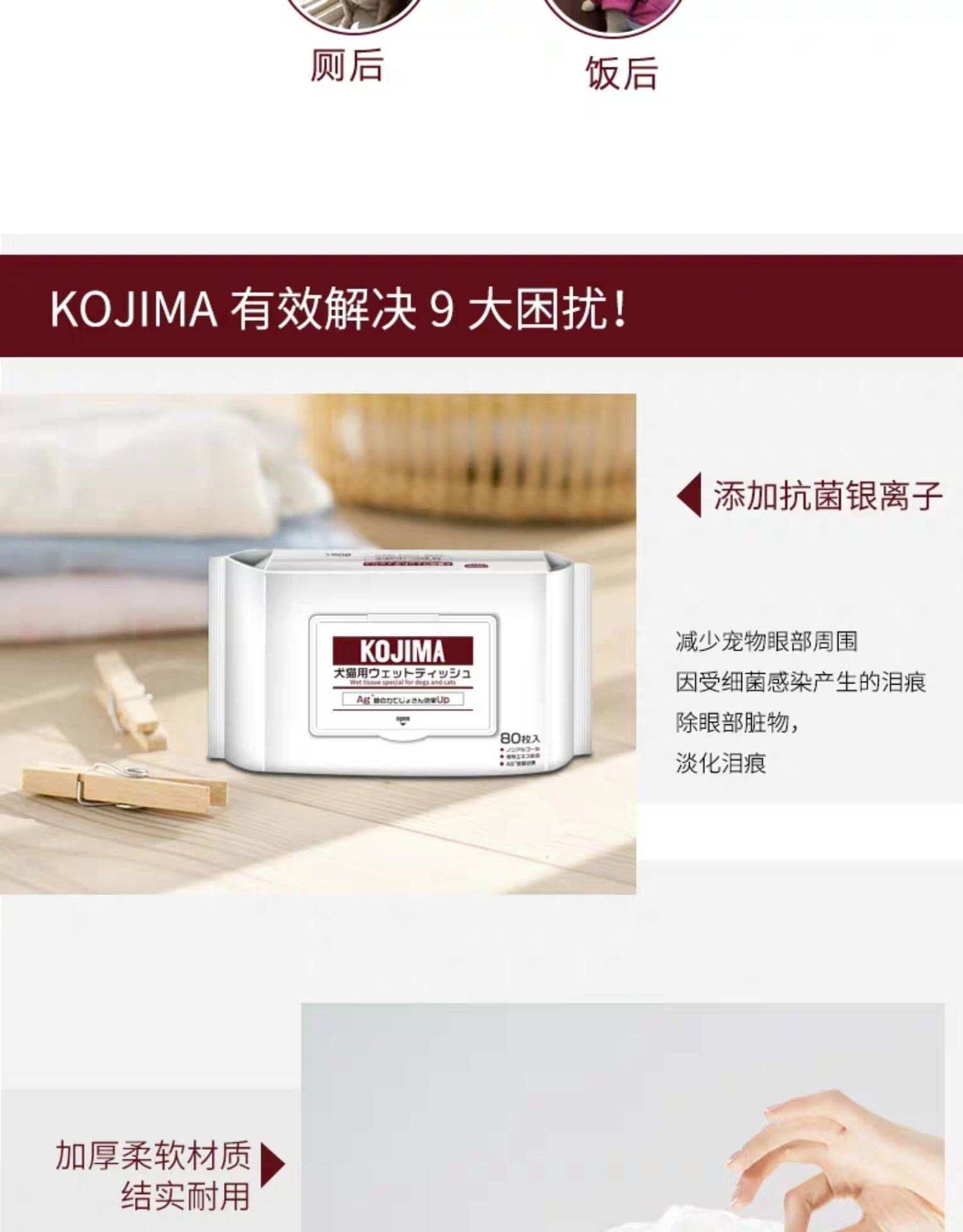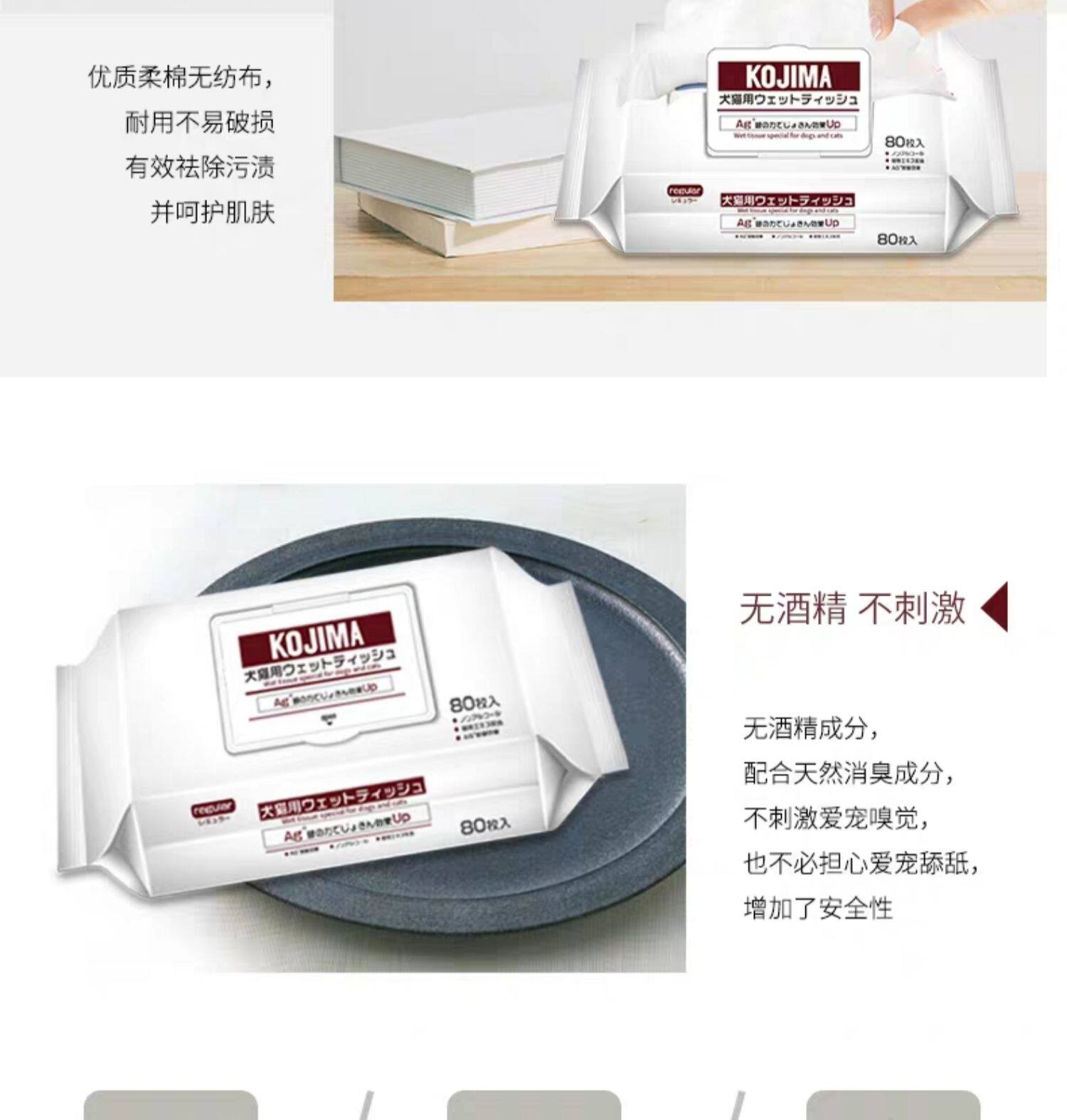 Япония кожима Pet Pet влажный влажный шарф серебряный стерилизация ионов кошачья кошка и собака Специальное влажное полотенце может быть уничтожено по всему телу