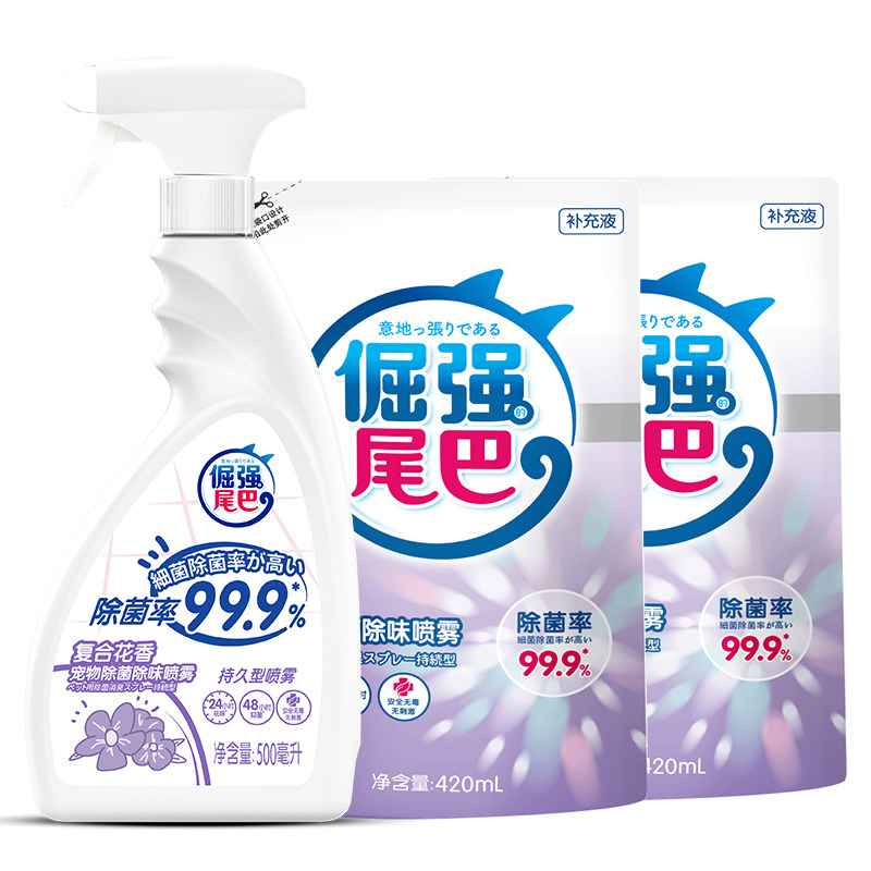 Упрямый хвост домашний кошка, собака, собака дезодоранта, композитный цветочный аромат 500 мл*1 бутылка+420 мл*2 сумка