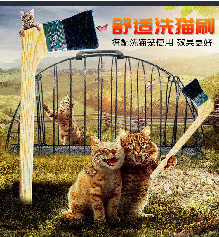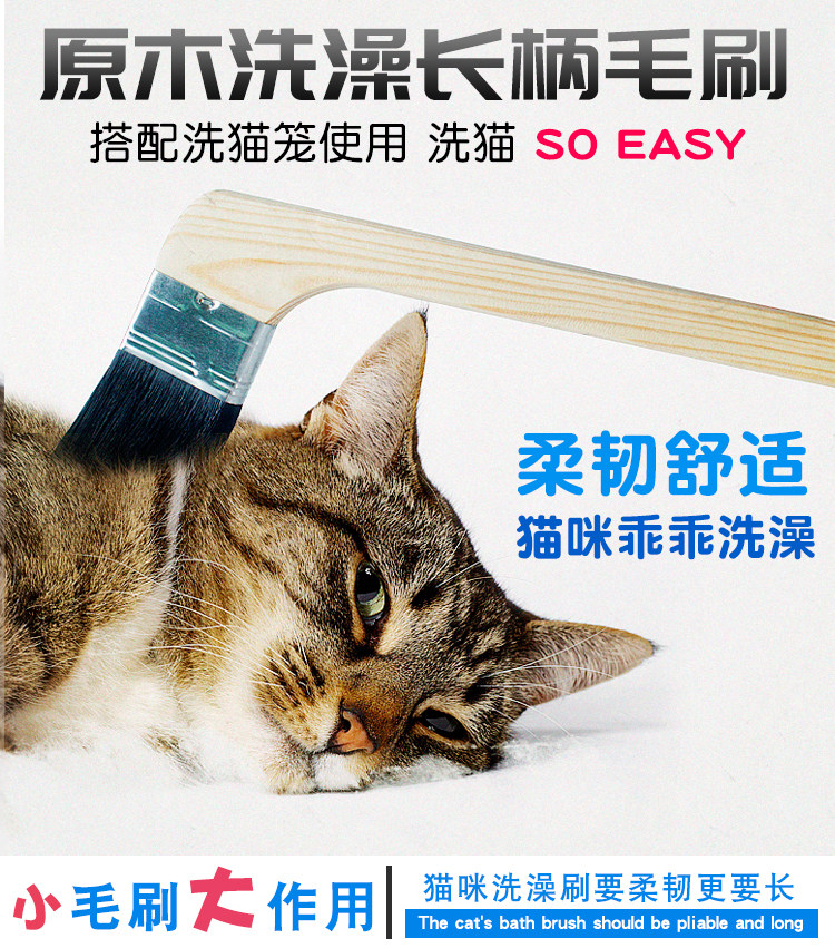 Клетка для ванны с кошачьей клетки с инструментами, бревенчатая ручка на локте, деревянная щетка длинная щетка для домашних животных душ душ