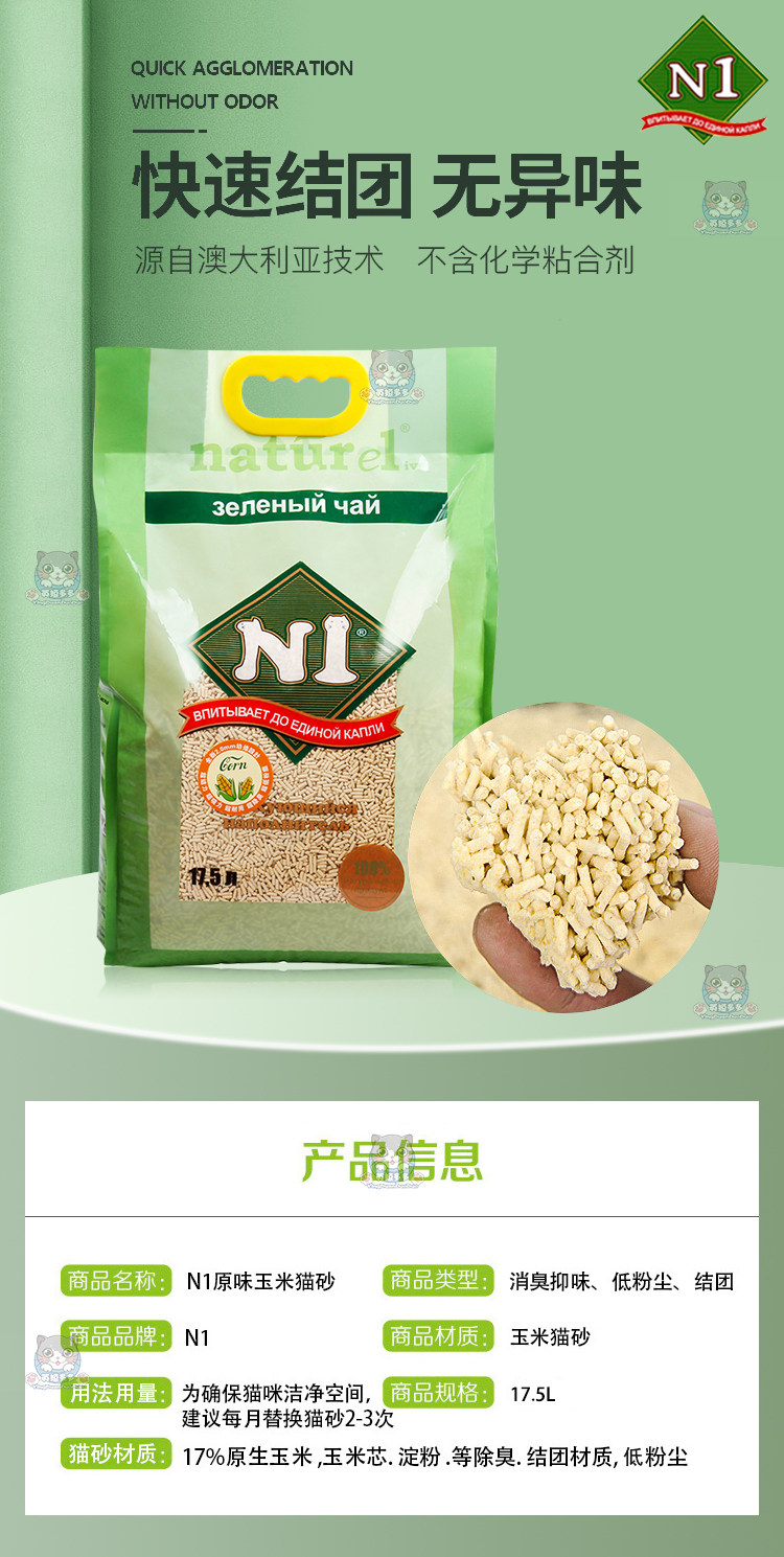 Бесплатная доставка N1 Оригинальный кукурузный зеленый чай кошачий песок 2.0 мелкие частицы без пыли группа может промыть туалет 17,5 л.