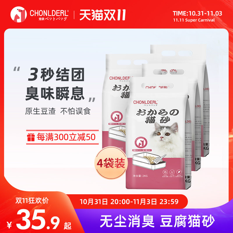4 Упаковка тофу кошачья песчаная дезодоризирующая пыль.