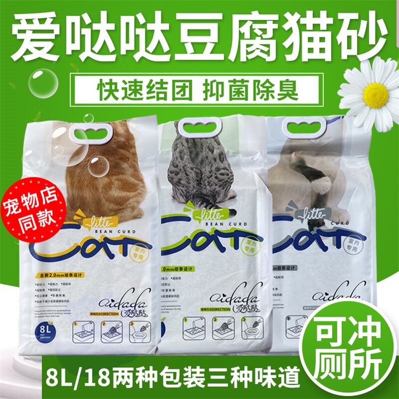Love Da da Corn Green Tea Tofu кошачий песок 8L активированный углерод -кошачий песок дезодорант без пыли может промыть туалет 18L бактериостатический