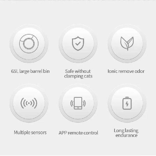 - Innovative Deodorization Technology Коробка для мусора для самостоятельной очистки принимает инновационную электронику ионный дезодорайзер, который является безопасным и нетоксичным, не нужно заменить каких-либо расходных материалов.