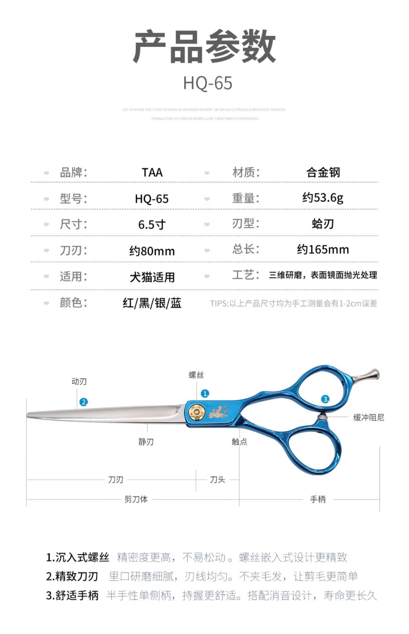 它它 Ножницы TAA PET красоты 7.2 -инд -hq72 Уточнение Прямой стрижка светло -светло -световой световой и небольшой порез