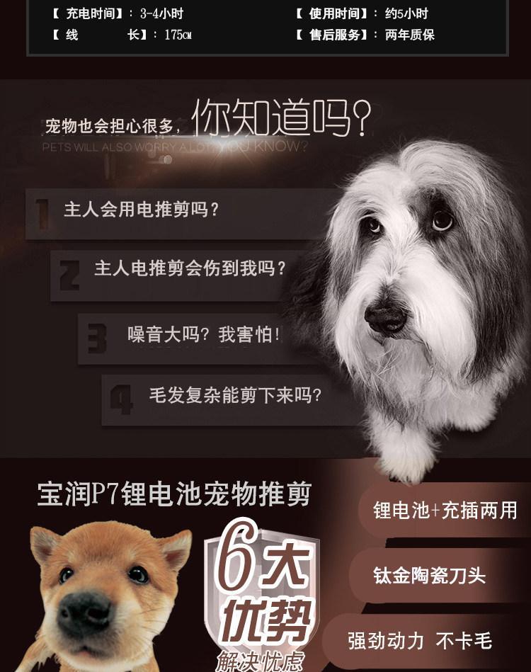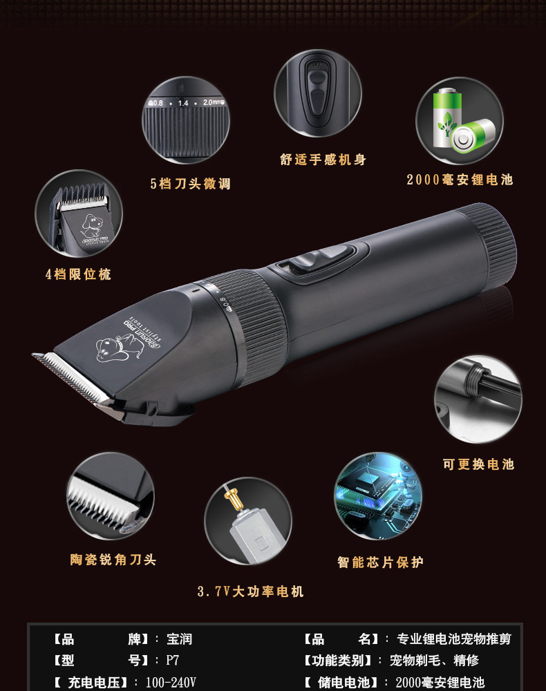 宝润 PET Electric Pushing крупный инсу ди -ди собаки для собак зарядка Mao Dao Mao Mao Mao Drable Tool Tool