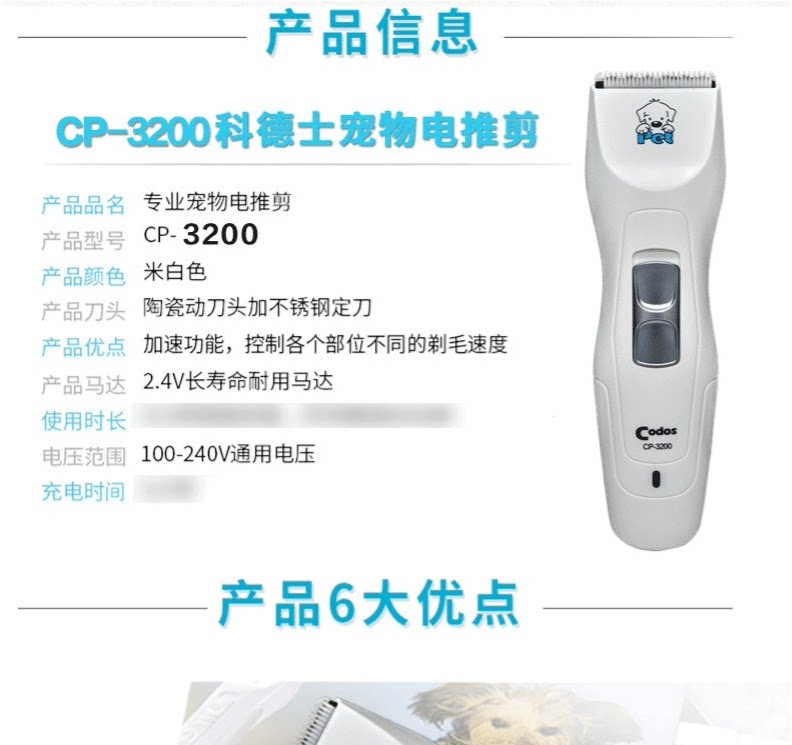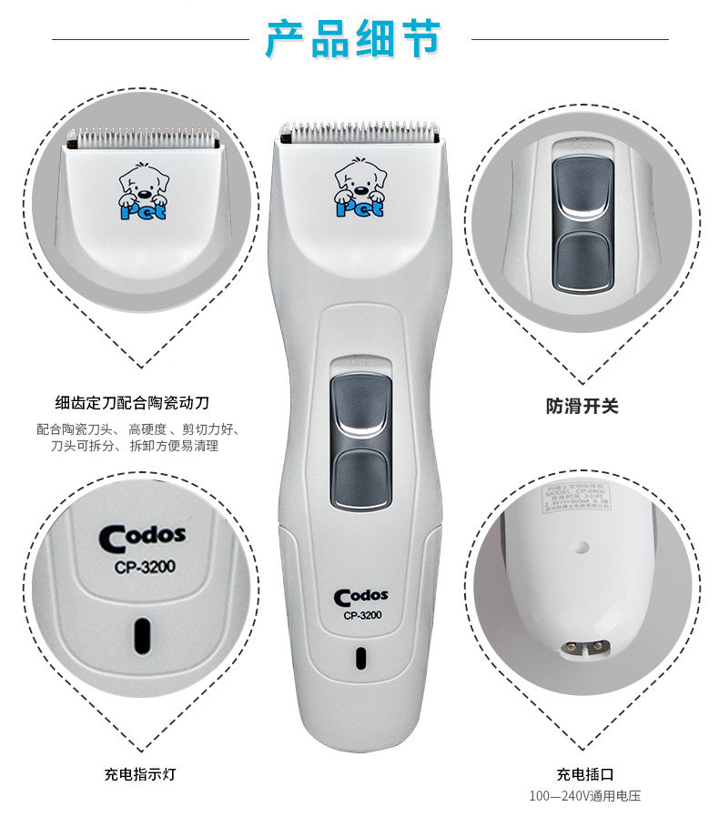 Codos, беззвучная машинка для стрижки волос, для стрижки домашних животных
