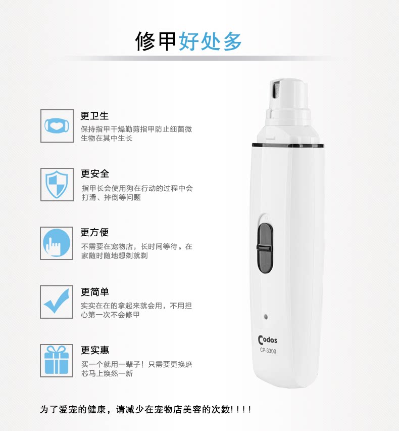 ◆ Если это первый раз, когда использует шлифовальную машину брони, рекомендуется сначала размолоть острые или слишком длинные ногти. Не полистайте слишком много, чтобы избежать конфликтов между домашними животными слишком долго, и в то же время позвольте домашним животным постепенно адаптироваться к мельнице брони.