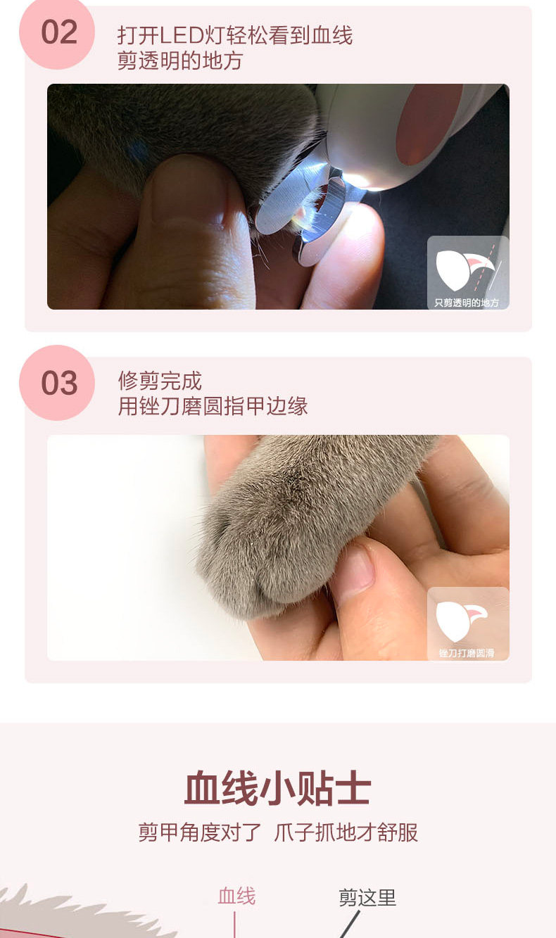 Собачьи ногти срезайте галстук кошачьи гвоздь Специальная кошачья лап нож для ножа светодиод