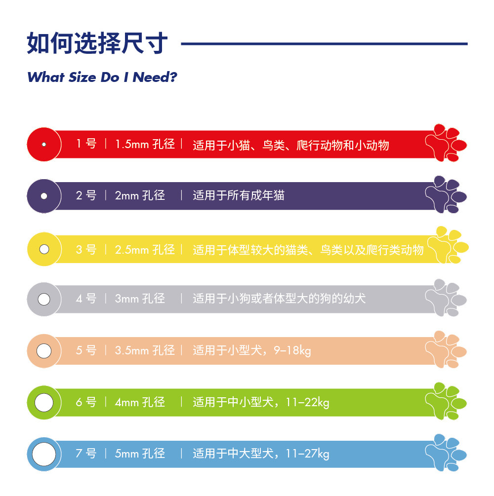 | Цвет: | Поры 1,5 мм [подходят для котят]., Поры 2 мм [подходят для взрослых кошек]., Поры 2,5 мм [кошки, подходящие для длинных гвоздей]., 3 мм апертура [подходит для щенков или щенков]., Поры 3,5 мм [применимы к маленьким собакам 9-18 кг]., Поры 4 мм [подходят для маленькой и средней собаки 11-22 кг]., Апертура 5 мм [применима в середине большой собаки 11-27 кг]. |
