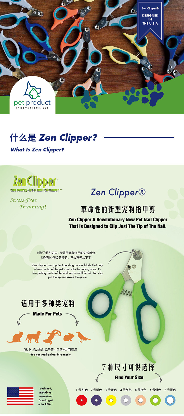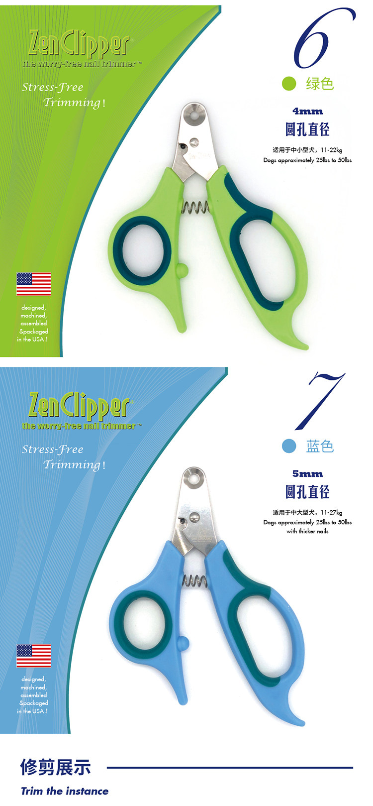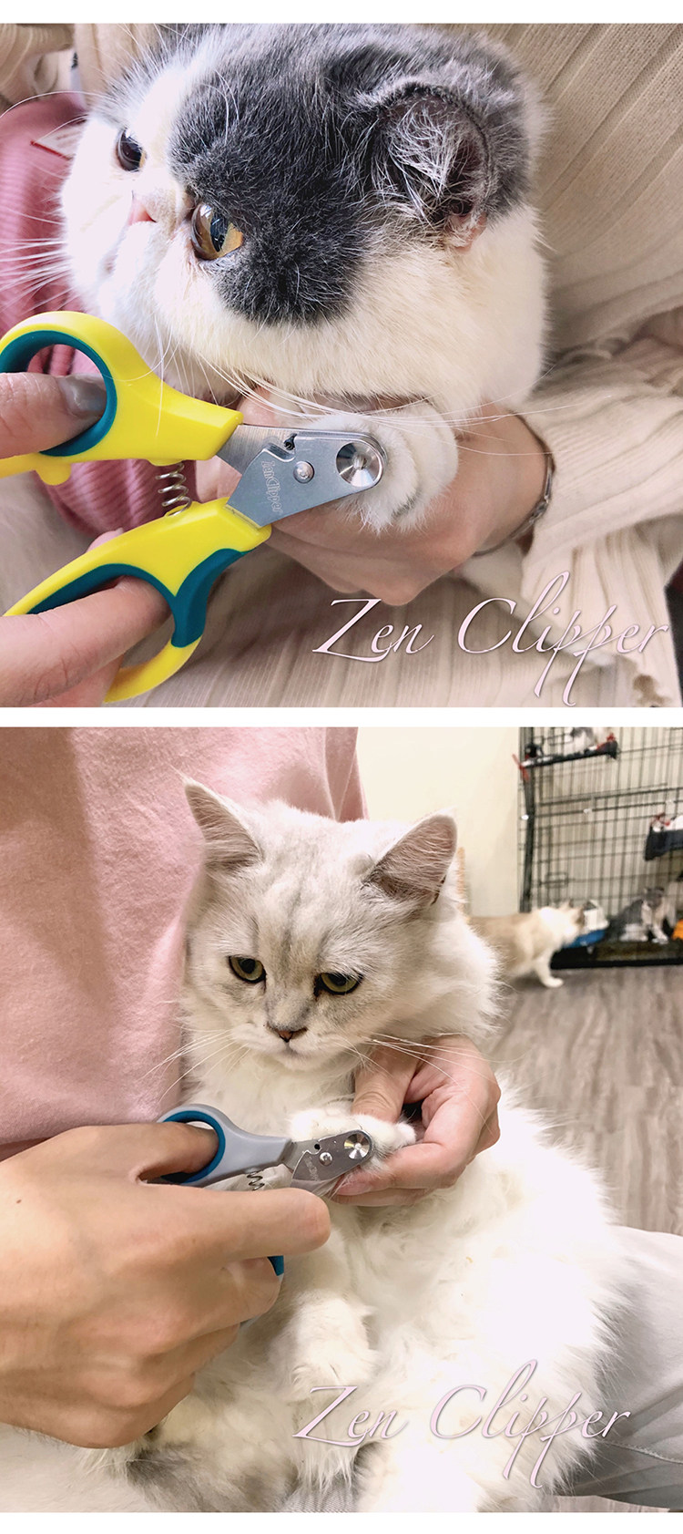 Советы:Каждый гвоздь каждого питомца не будет одинакового размера. Например, гвозди на задних лапах кошки будут больше, чем передние лапы. Вообще говоря, более идеально найти подходящее для передних лап (или подготовить две модели). Более того, если ногти не разрезаются в течение долгого времени, ногтевой оболочка гвоздь кошки будет расти и толще без естественного метаболизма. В настоящее время вам нужно использовать обычную клиппер для ногтей, чтобы сначала отрезать толстые.Таким образом, вы можете приготовить обычного Zenclipper дома.Изысканные родители могут 1 обычная рука и 2 Zenclipper