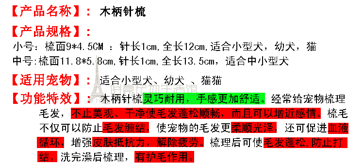 Расческа для питомца деревянная ручка, собачья игольчатая расчесыва