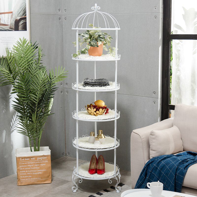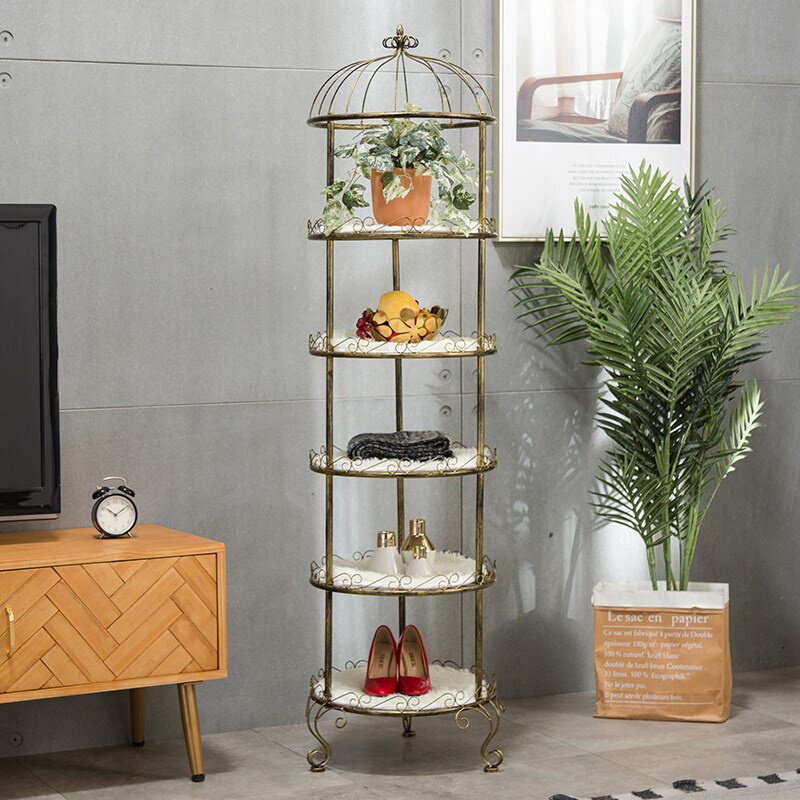 Ретро железное цветочное полка круглый дисплей для птичьей клетки полки полки многослойная полка гостиная гостиная