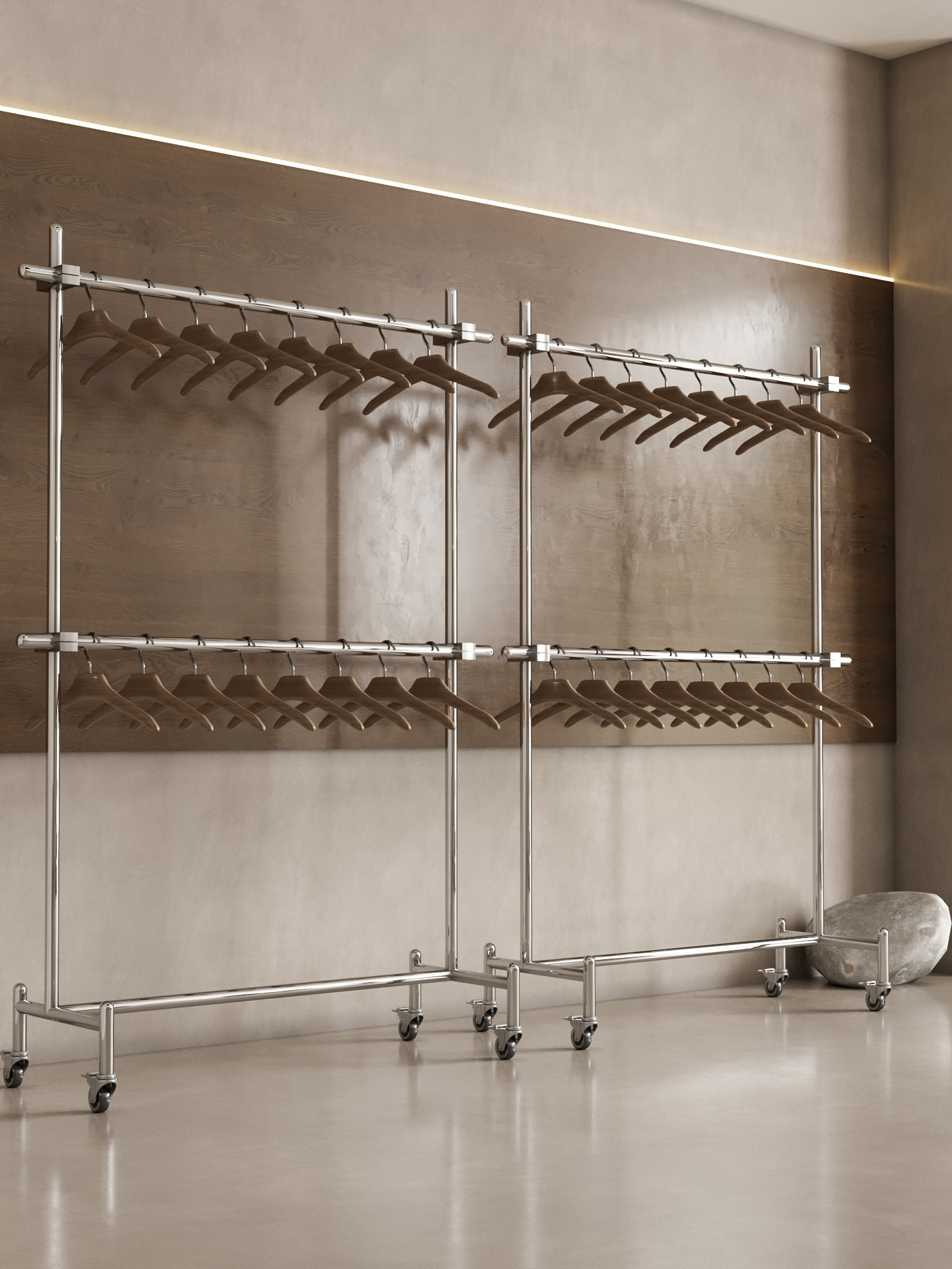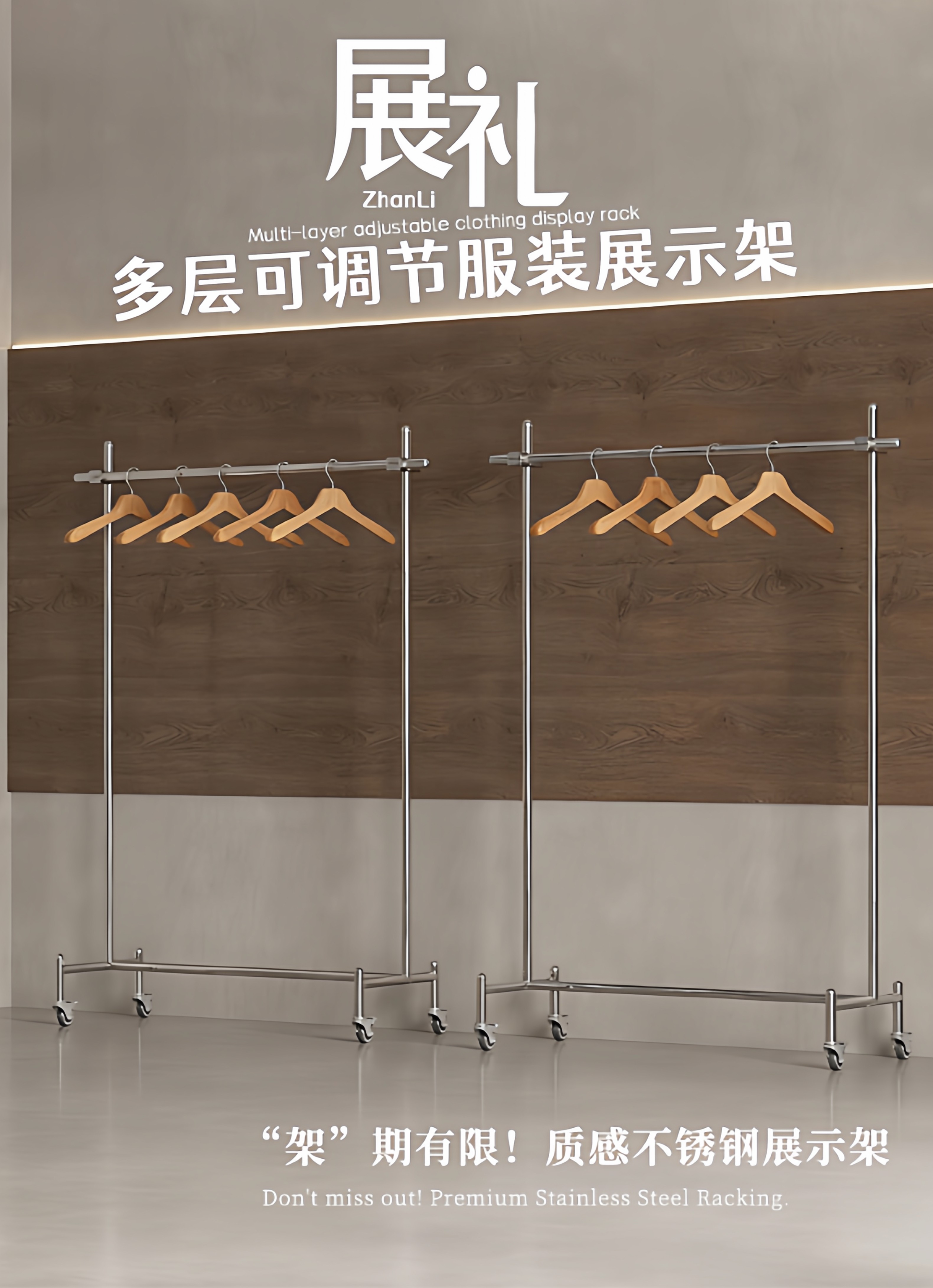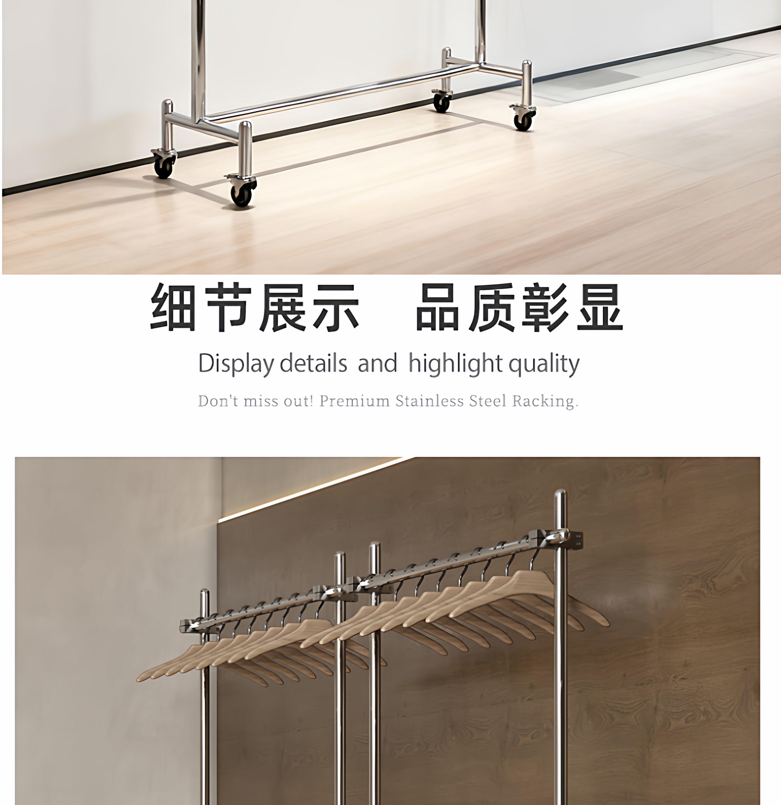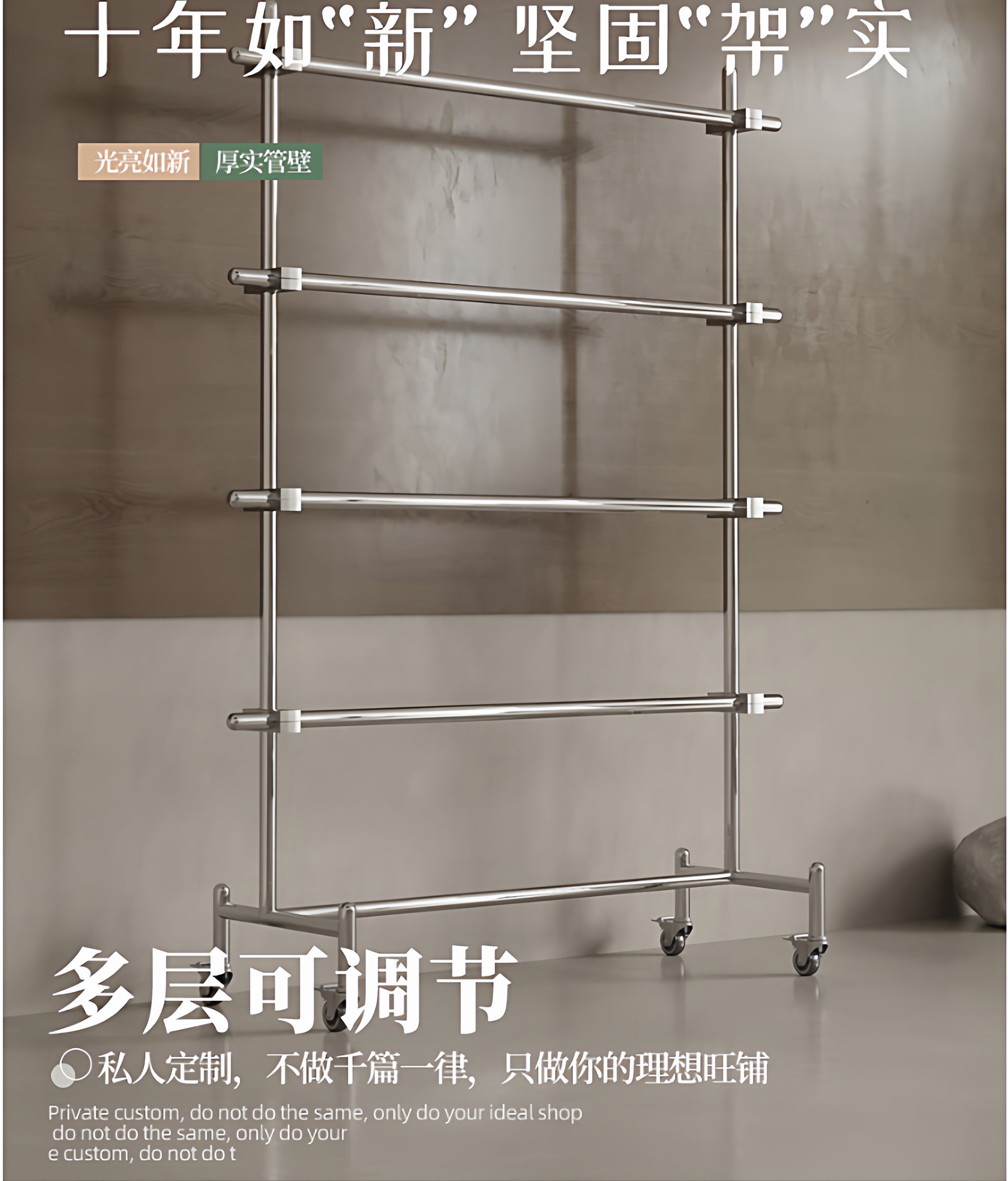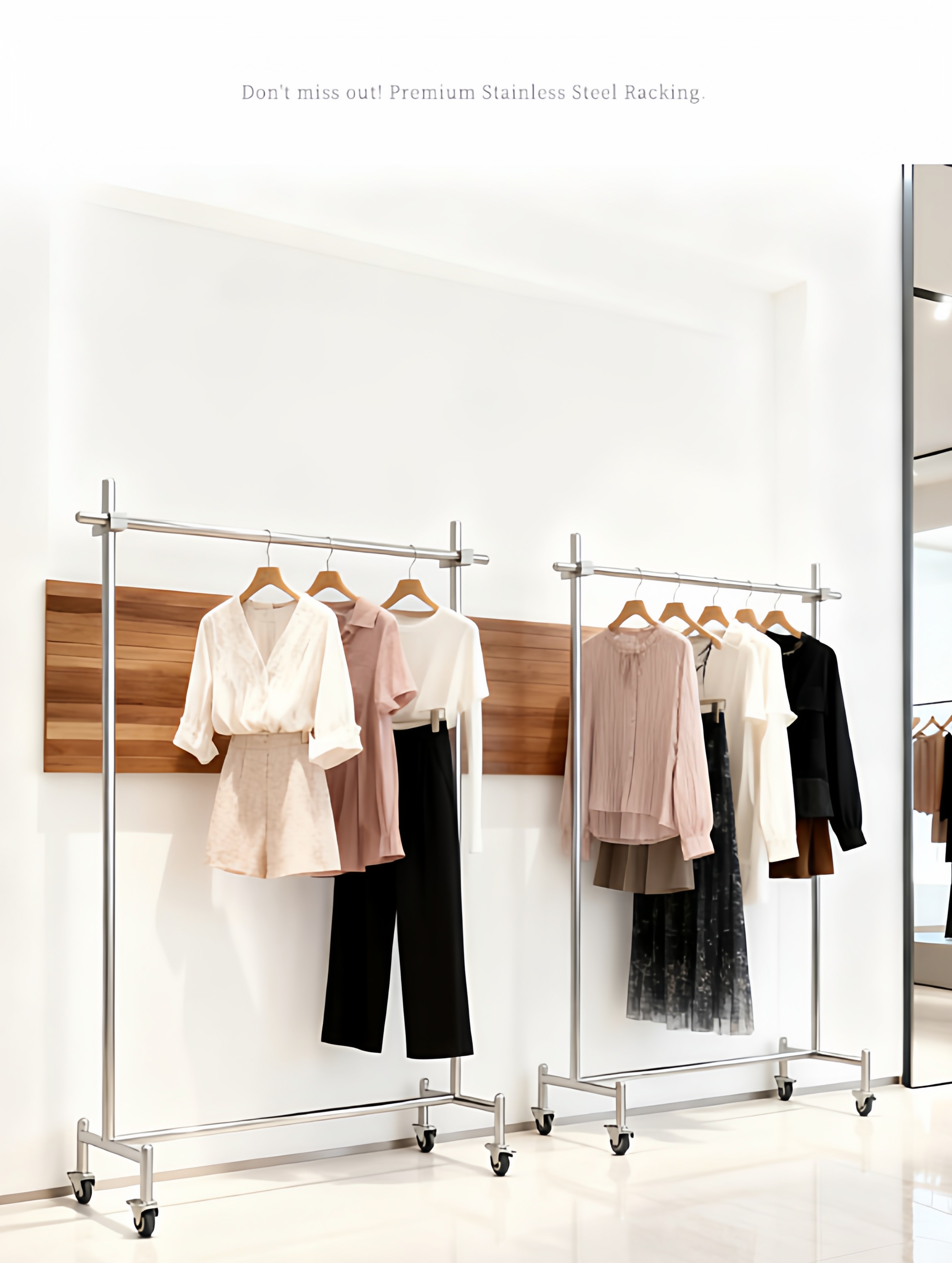 Витрина для магазина одежды, напольная полка из нержавеющей стали, мобильная вешалка для одежды на колесиках для мужчин и женщин, регулируемая островная стойка