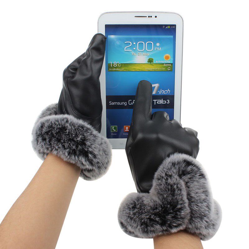 Женщины кожаные штрихи перчатки осень зимняя зима теплый кролик