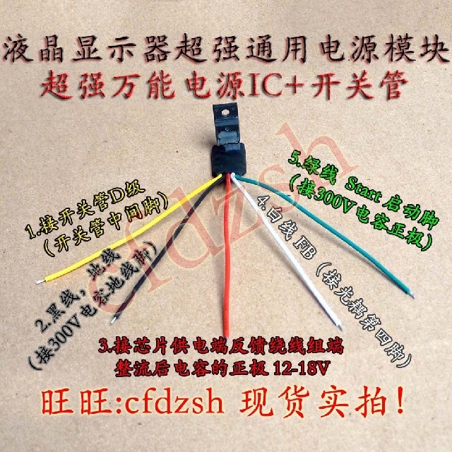 3-футовая красная линия: VCC, конец источника питания модуля, соединение положительных полюсов конденсатора после выпрямления обмотки обратной связи, непрерывного источника питания, напряжение составляет 12-18 В.