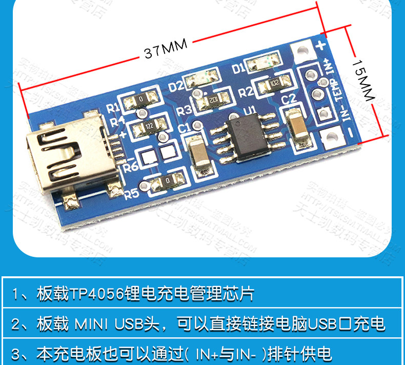 TP4056 Зарядка Source Module Poard 1a Литиеевая батарея и защита интегрированная защита над током мини -микрометровый интерфейс