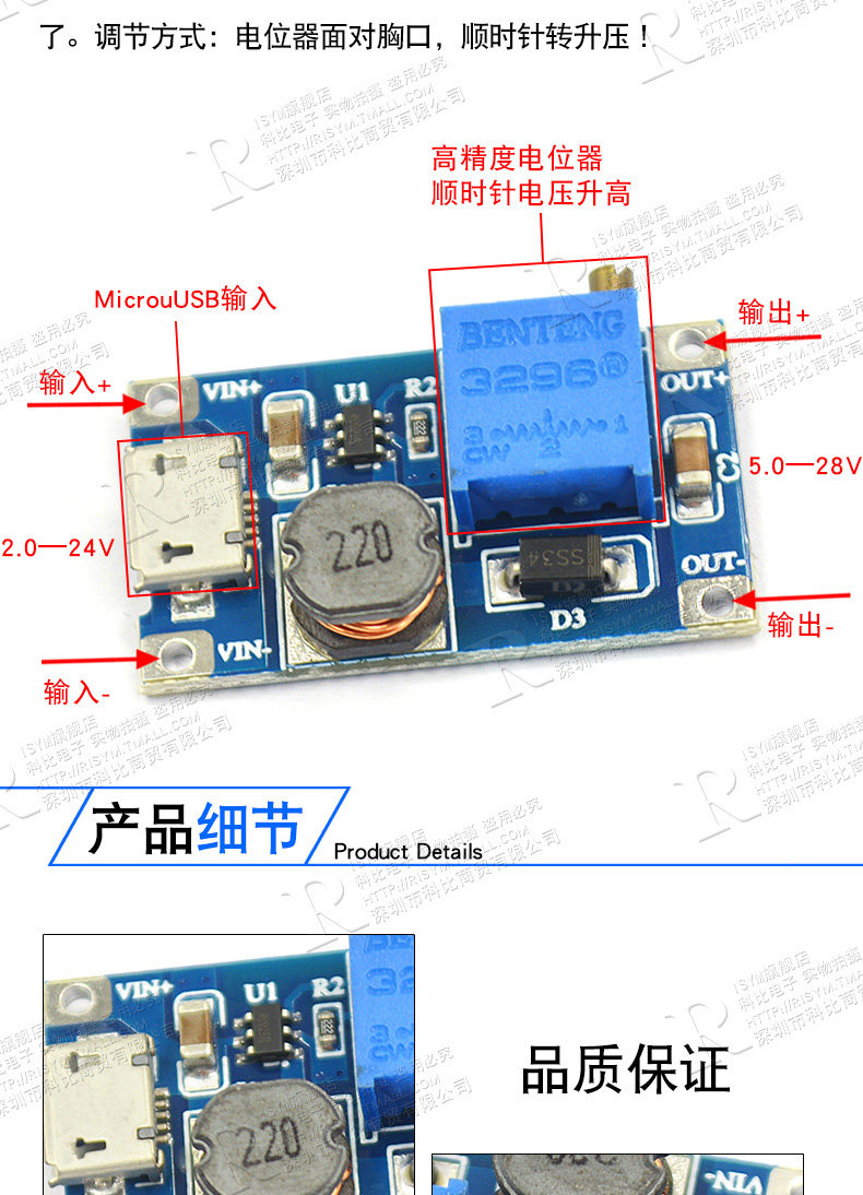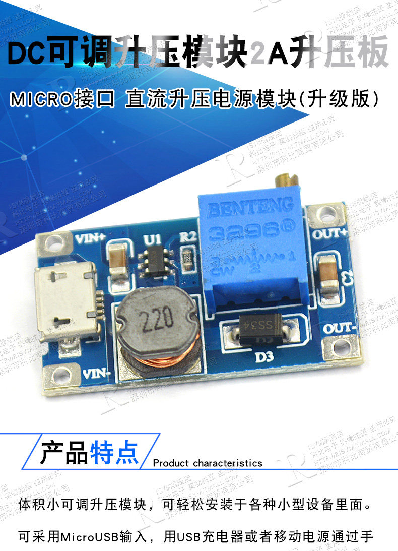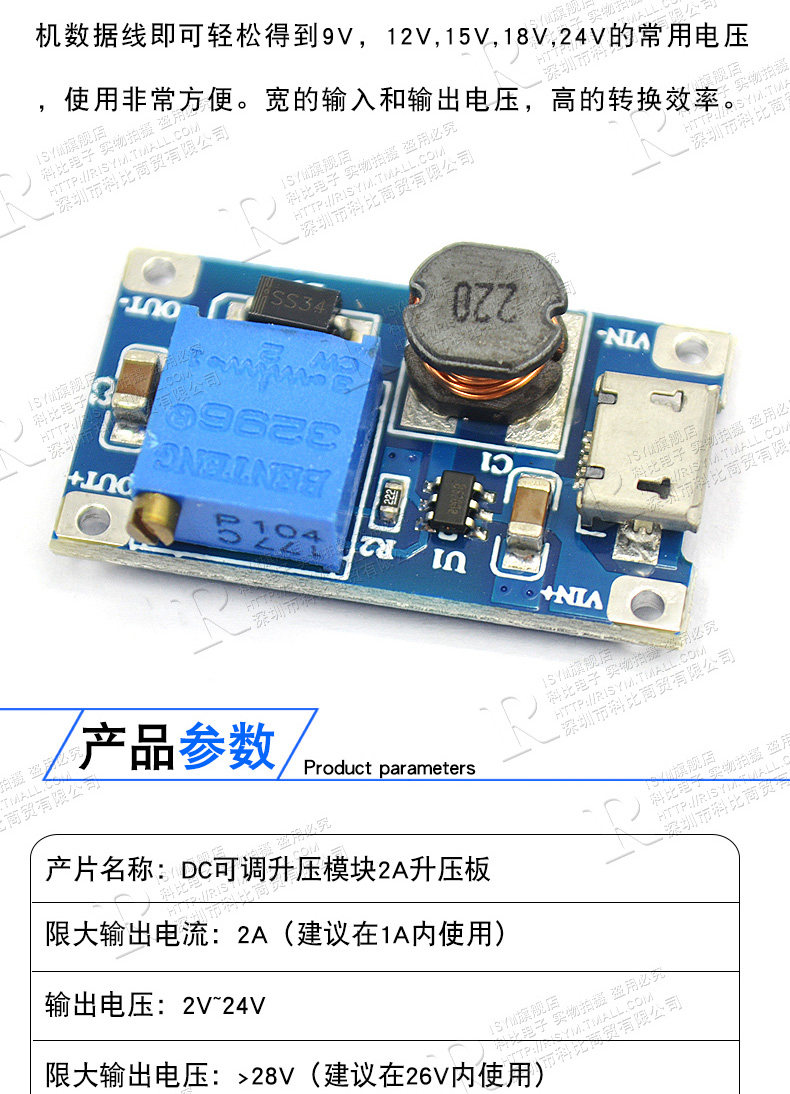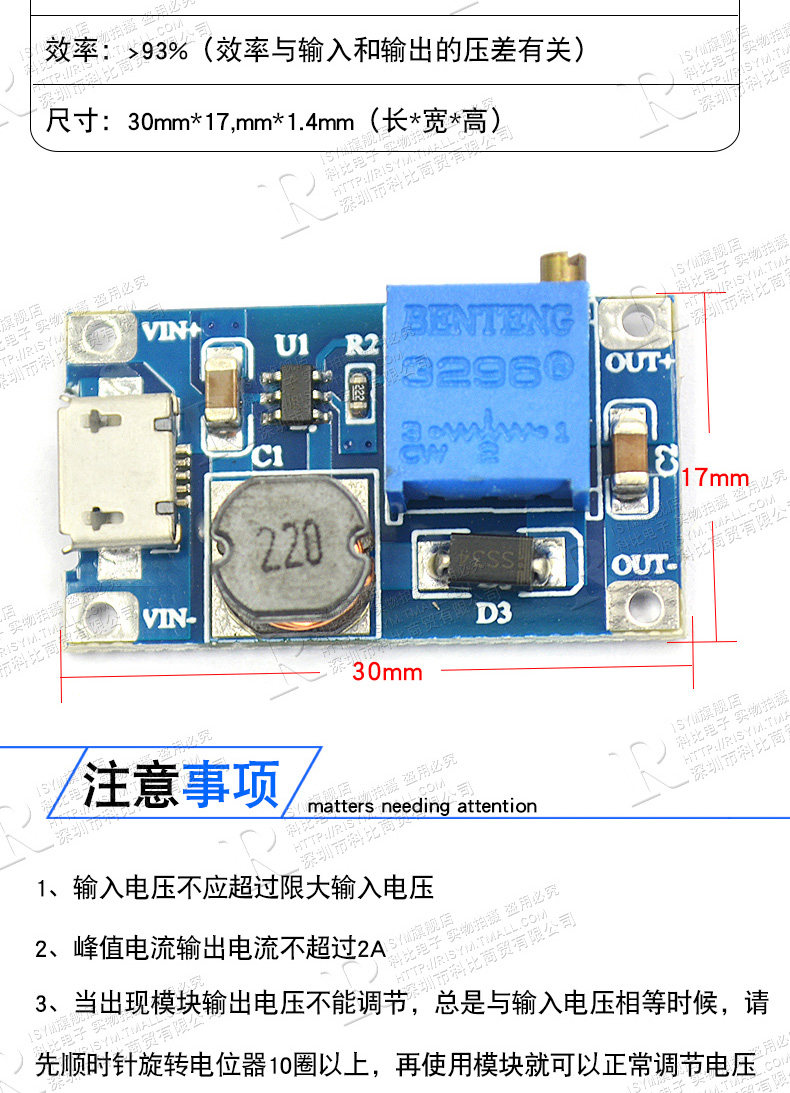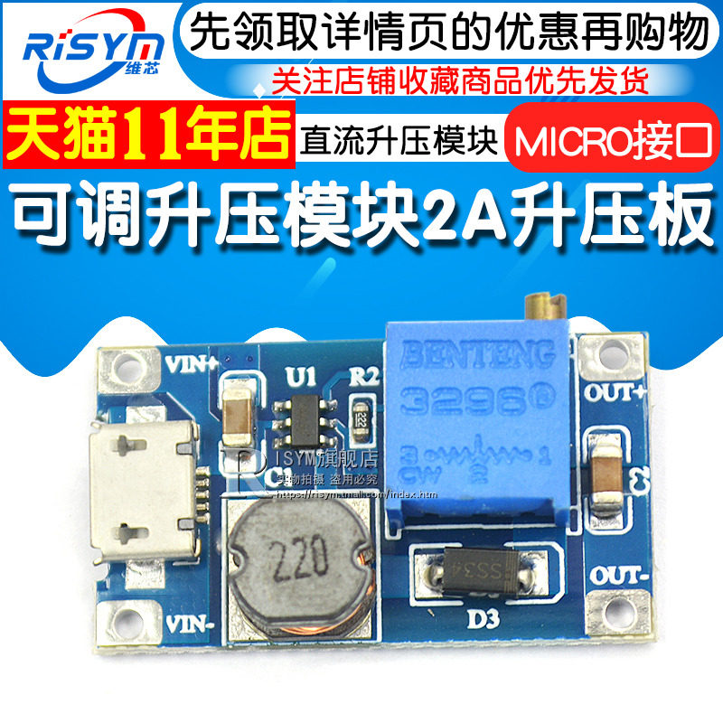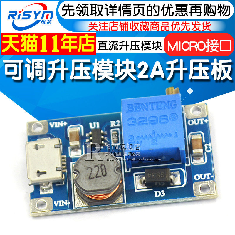 Risym DC-DC Регулируемый модуль Boost Module 2A модуль питания DC (обновленная версия)