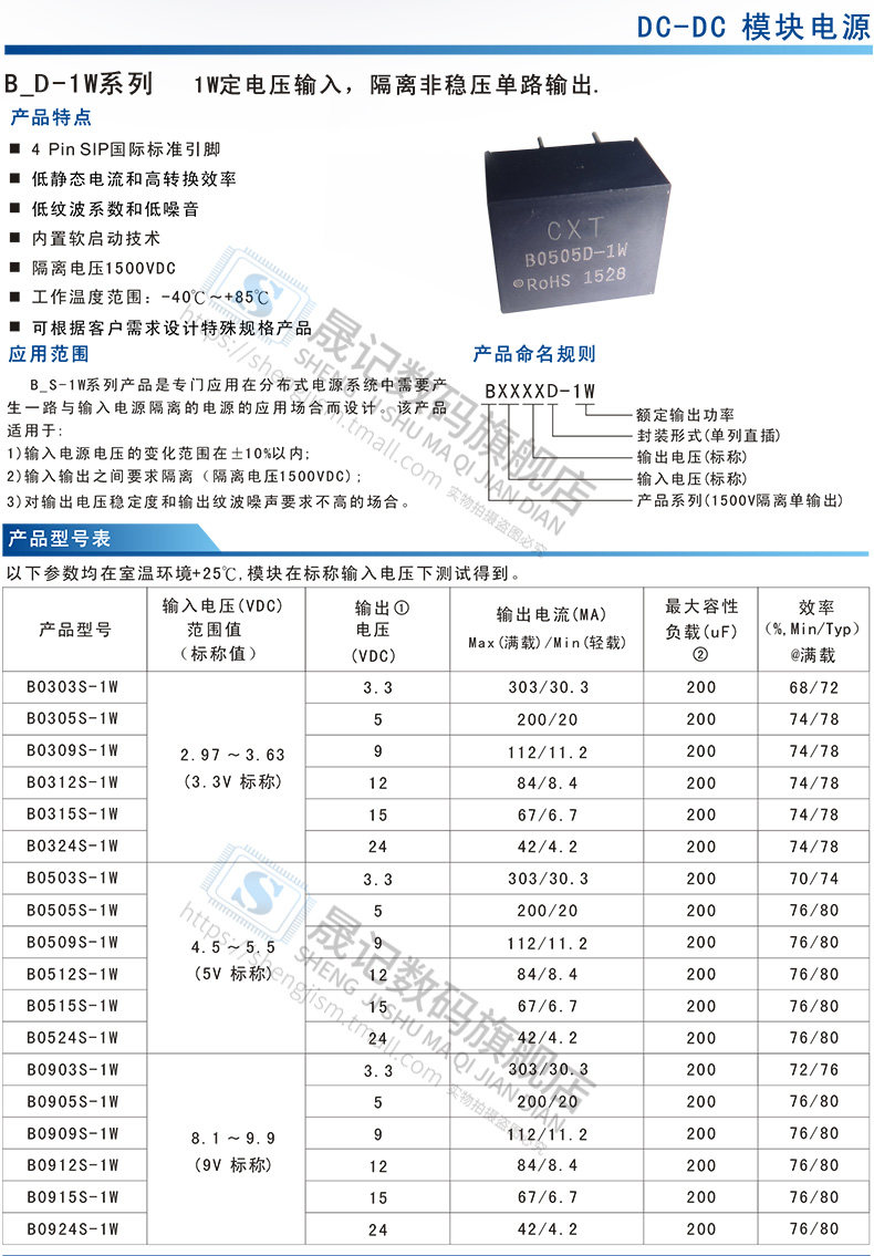 B0505D-1W B0505D-W2 B1212M-2W B0503S-W5 B2405S-W5
