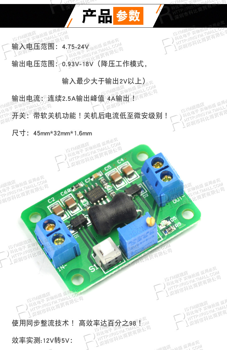 Risym Регулируемый модуль DC-DC модуль DC, регулируемая плата, регулирующая напряжение, превышает 2596 (модификация KIS-3R33)
