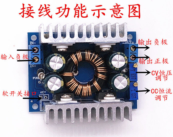 2. Установите около 30 кругов потенциометра CC на против часовой стрелки (то есть установите выходной ток на. Small), подключите к светодиоду и отрегулируйте потенциометр CC до того тока, который вам нужен.Для зарядки аккумулятора после установки батареи получен выход, и CC регулируется на необходимый вам ток. Более того, чем меньше ток зарядки.)Пожалуйста, не регулируйте ток в коротком замыкании. Структура цепи модуля не может быть отрегулирована в коротком замыкании.