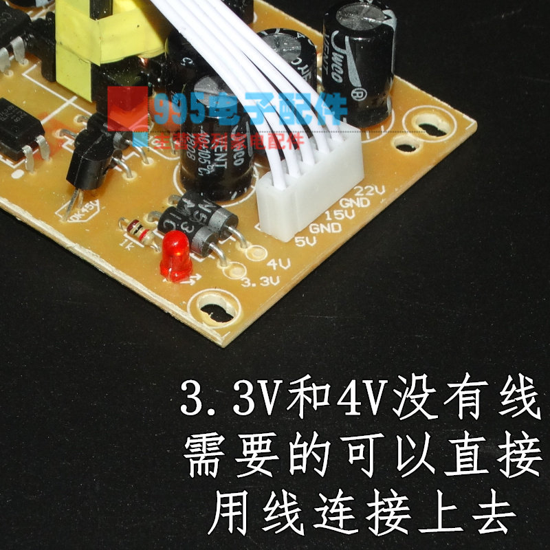 Напоминание: 3.3V и 4V не имеют проводов. Если вам это нужно, вы можете напрямую подключиться к линии. 3,3 В и 4V-1,5A токи, 5V-2A ток, 22 В (18 В-24 В). -15V -это оба могут использовать)