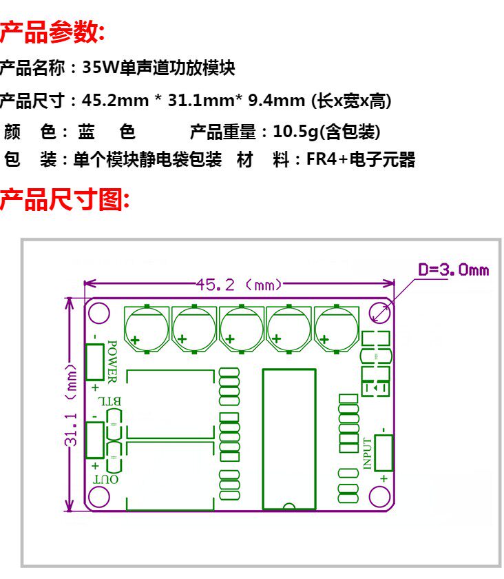 Модуль цифрового рабочего модуля 35W монокулярное канал модуля модуля высокой мощности высокого энергопотребления TDA8932BT