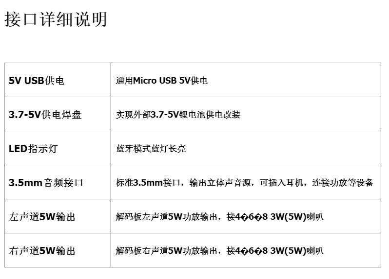 Поддержка Bluetooth4.2Версия,3.7-5VПитание питания, поддержка автоматической функции восстановления, укладку стерео звучаниеDРазличный модуль усилителя мощности, максимальный выход5W+5W, Может забрать два46 ?? 8 3 Вт (5 Вт).