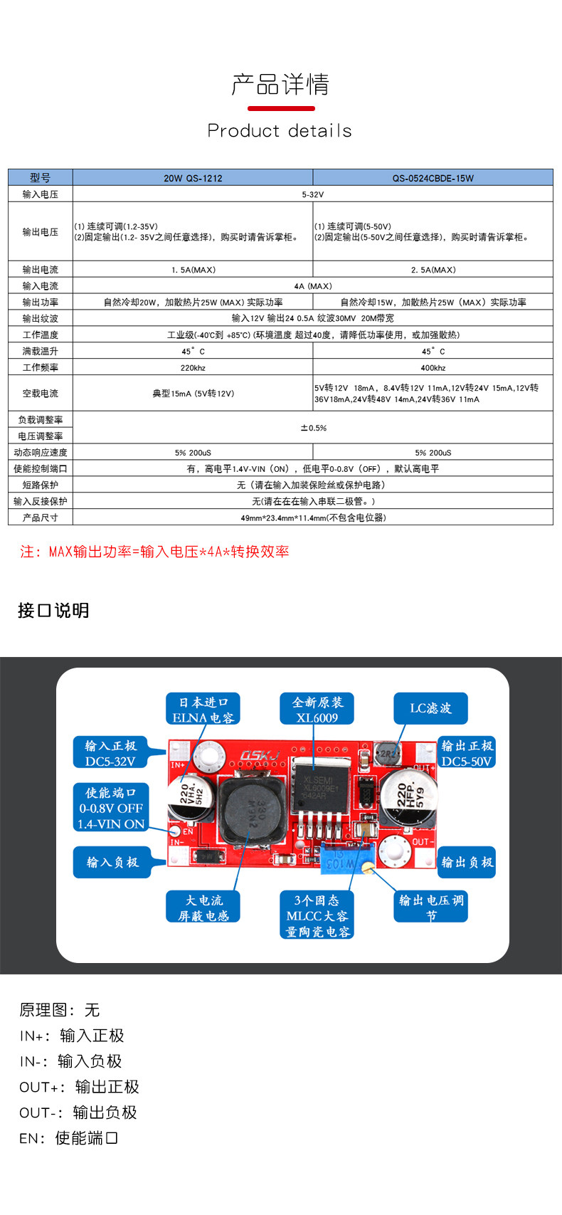 15 Вт/20 Вт XL6009 DC-DC Регулируемый подъем питания и модуль быстрого развития.