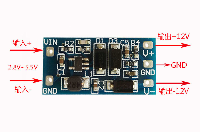 модуль питания2.8V~5.5VвходитьПоложительный и отрицательный12VВыход 5Vизменять±12V DCDC Conversion Board