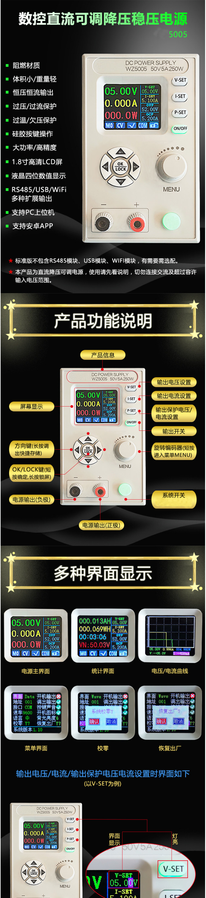 Стабилизация постоянного тока. Струкция питания DC Регулируемый антигипертензивный модуль ЖК -дисплей 50V5A Постоянный напряжение Ремонт тока.