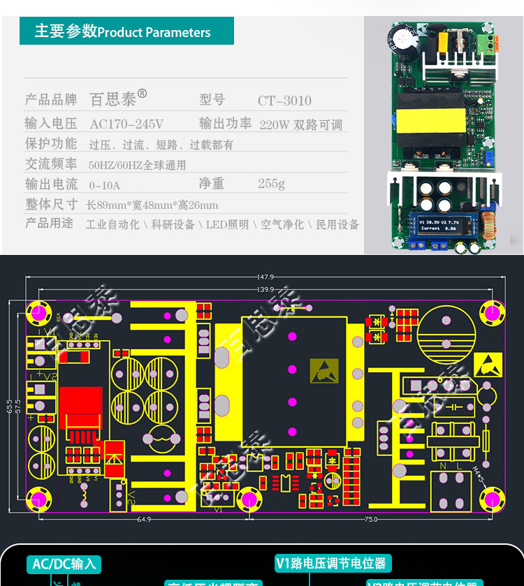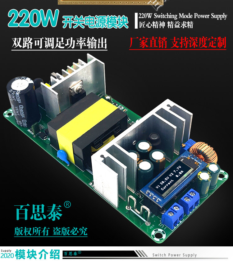 Регулируемый переключатель, блок питания, промышленный модуль, высокая мощность, 220W, 9A, 10A