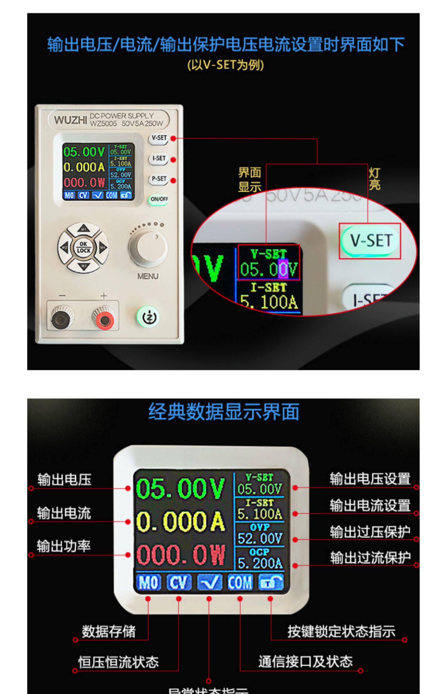 Техническое обслуживание Источник питания постоянного тока Понижающий модуль регулируемого источника питания постоянного тока Регулируемый ЖК-дисплей 50 В 5 А Постоянное напряжение и постоянный ток