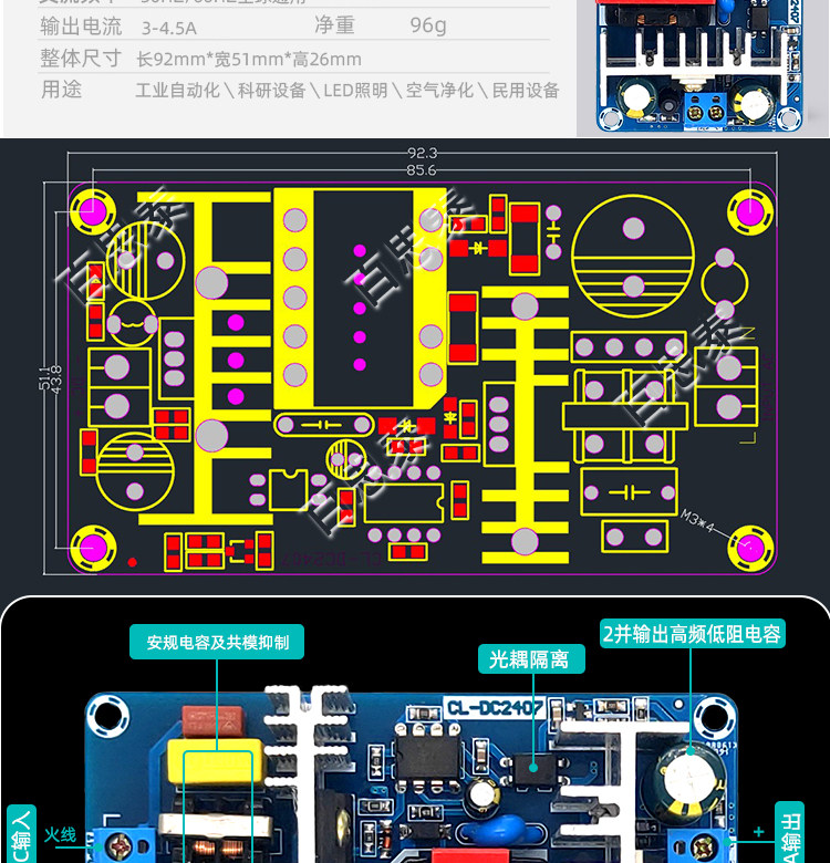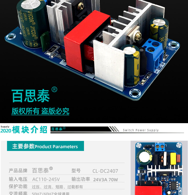 DC, переключатель, блок питания, модуль, 24v, 3A, 24v, 70W, 220