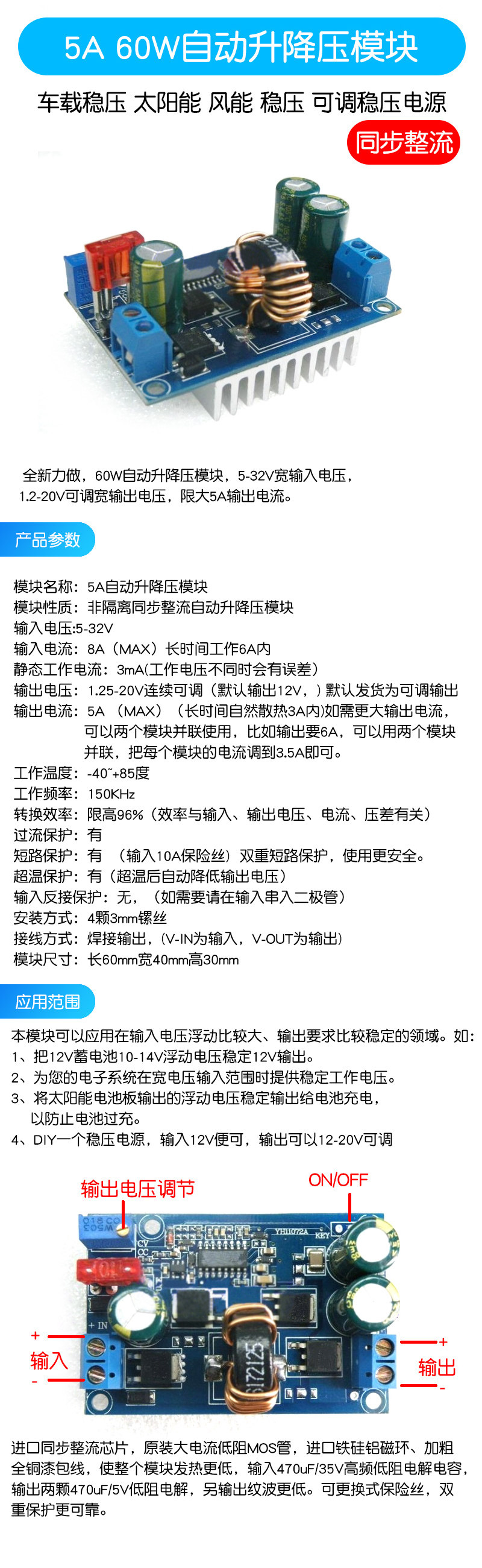 DC-DC 5A 60W Автоматическое подъем вниз по модулю усиления солнечная энергия ветра Напряжение напряжения напряжения напряжения напряжения
