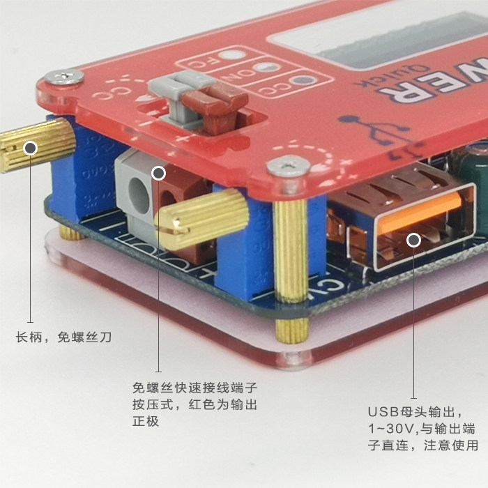 2.2.Выходное напряжение:1-30 В (быстрый вывод терминала проводки, USB Mother Head, вывод,Обратите внимание, что они являются прямым соединением, тщательно проверяйте выходное напряжение перед вставкой USB -устройства!Полем