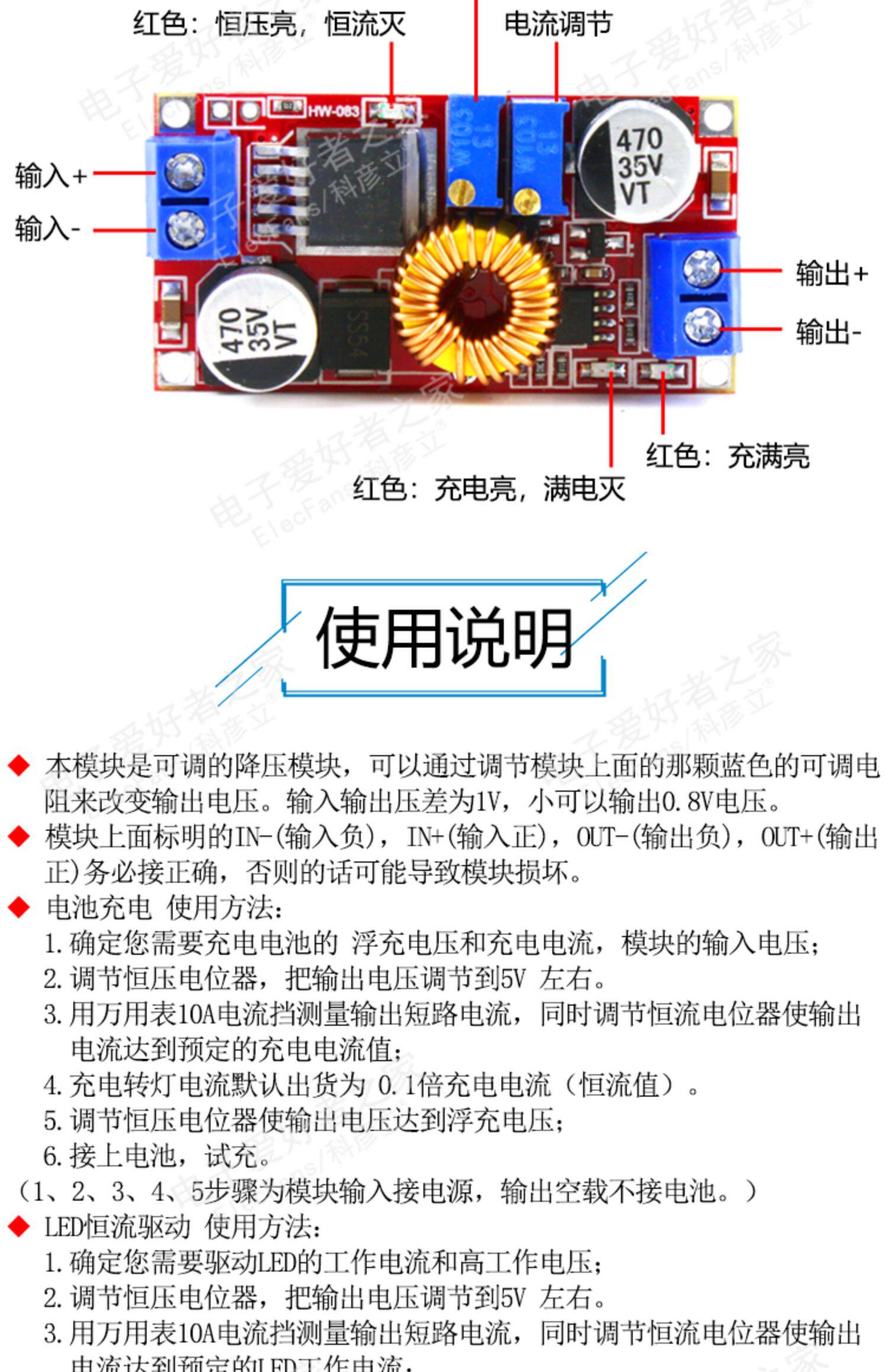 Регулируемый блок питания, модуль, литиевые батарейки, светодиодное зарядное устройство, 5A