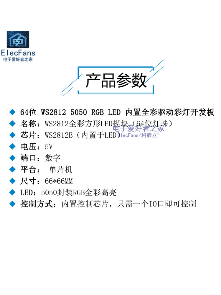 64-битный модуль головки лампы 5050 Smd Rgb, полноцветный светоизлучающий светодиод, встроенная плата разработки цвета драйвера Ws2812