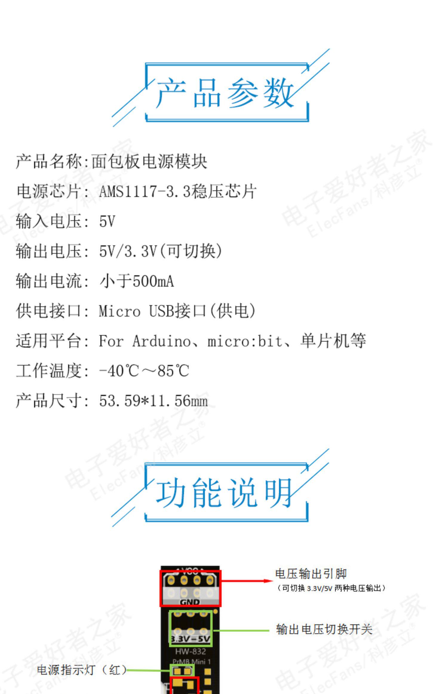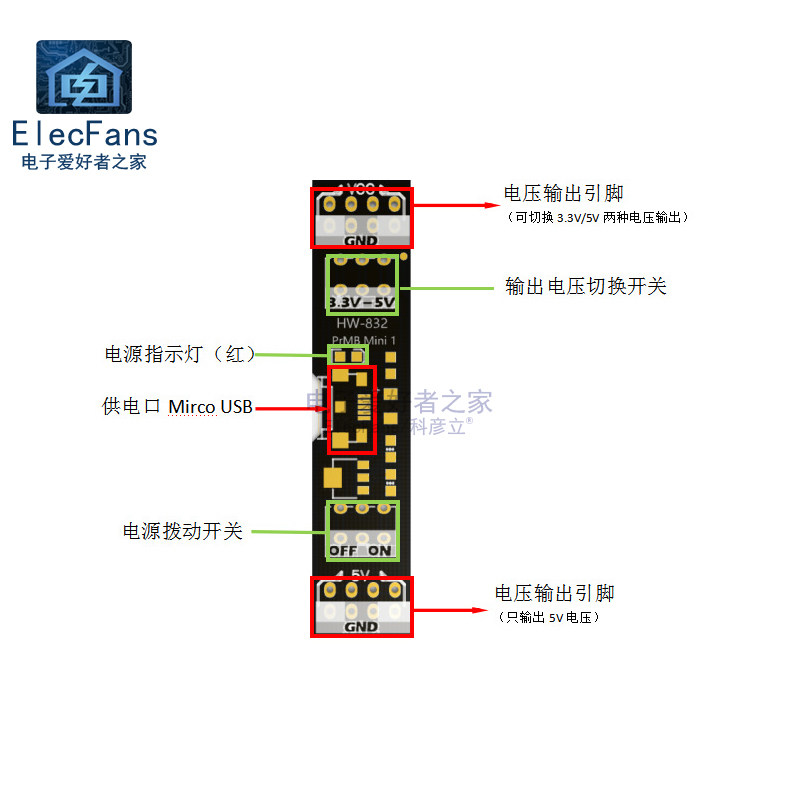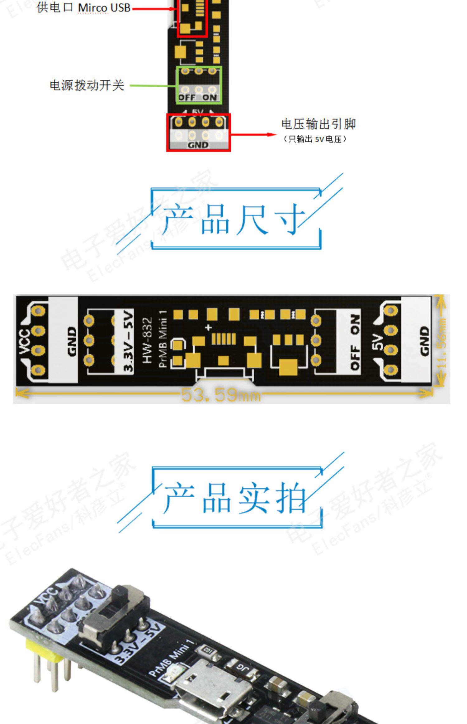 Модуль питания хлебной платы 5 В 3,3 В постоянного тока Ротор ротор Micro USB Экспериментальный эксперимент