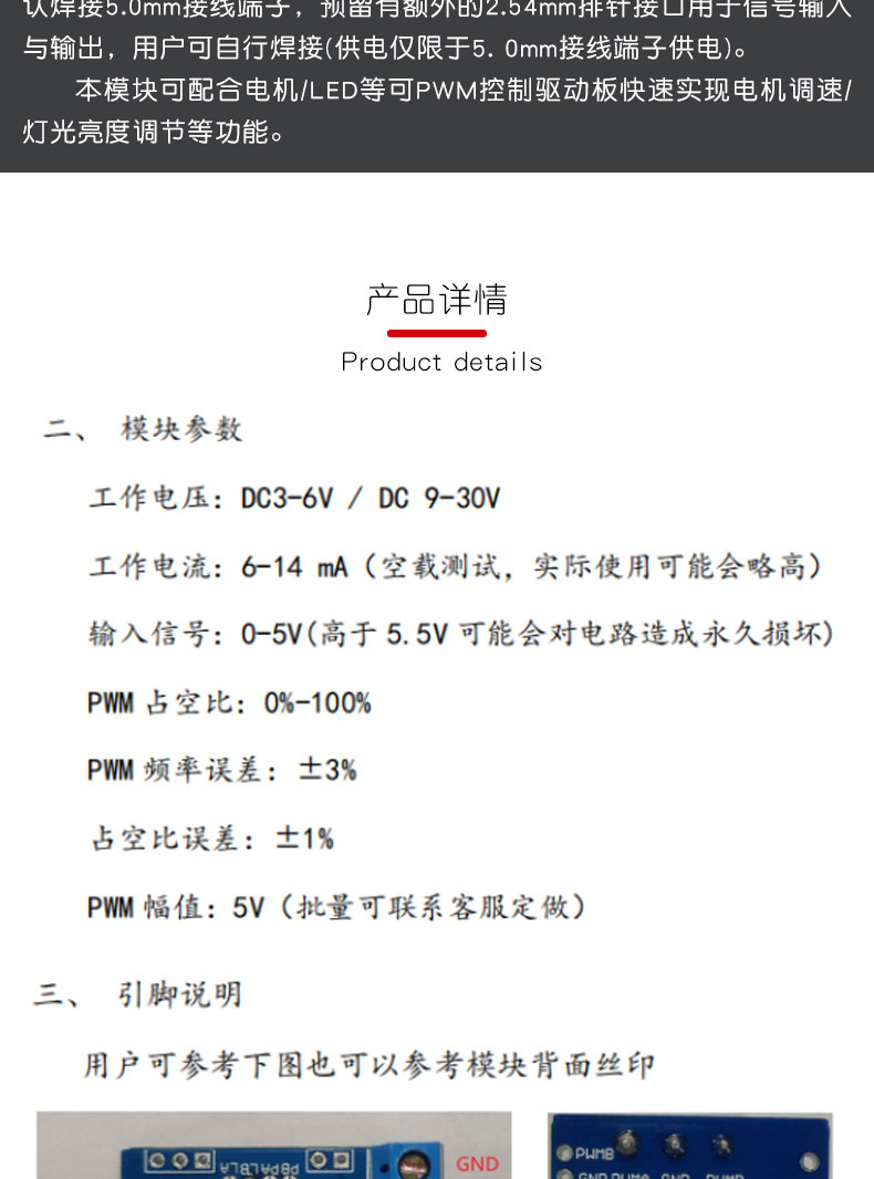 Напряжение к модулю ШИМ 0-5 В напряжение до 0%-100%сигнала ШИМ (1/10 кГц)