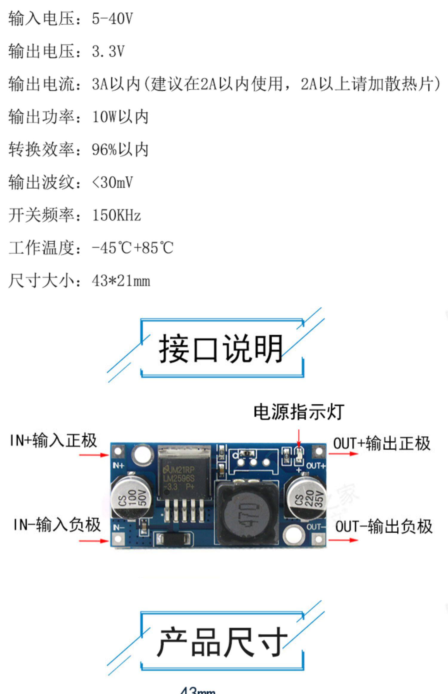 LM2596S-3.3 Модуль анти-цена Фиксированный выход 3,3 В.-DC DC не может регулировать плату питания напряжения напряжения 3A