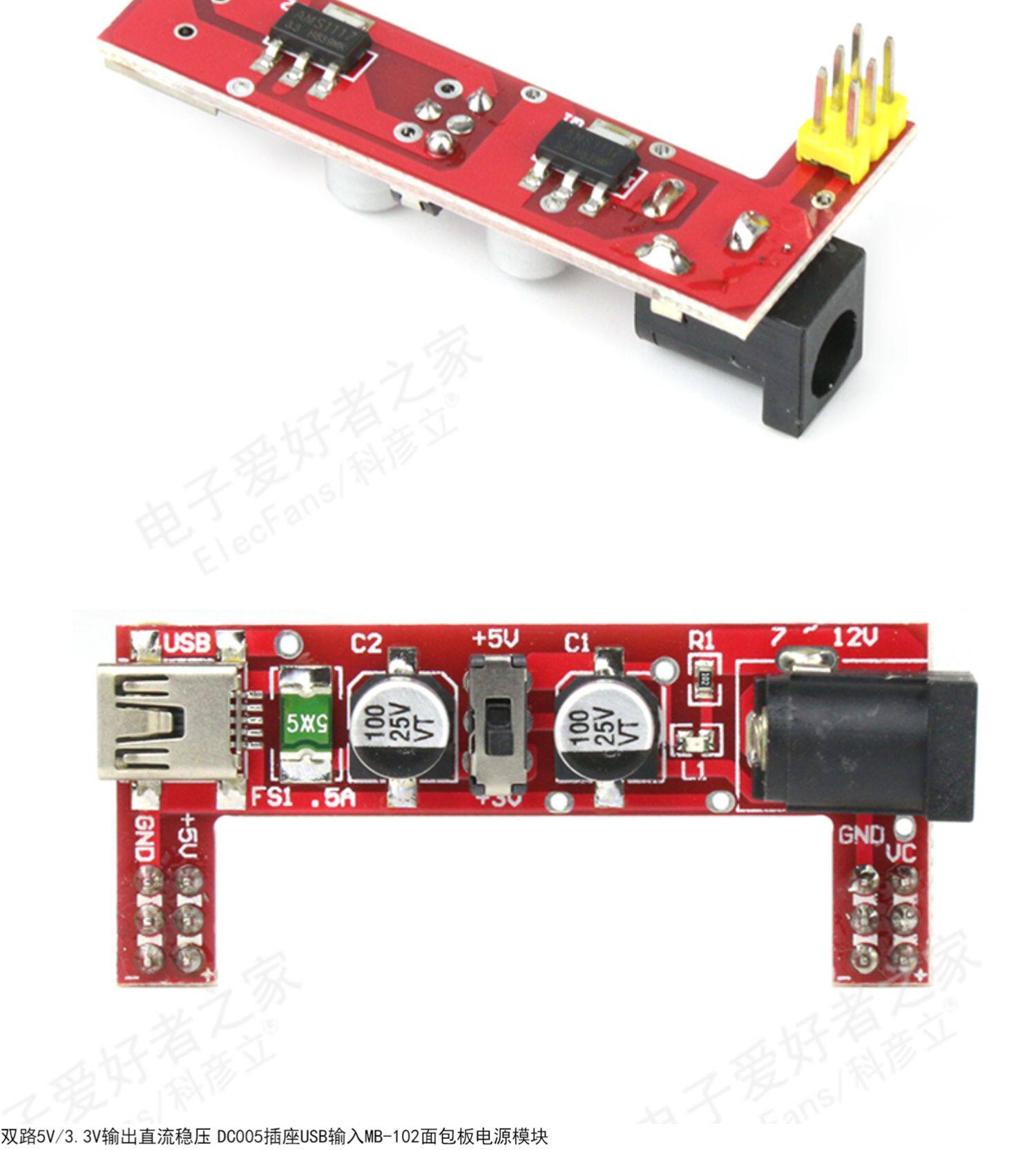 Двойная дорога 5 В/3,3 В вывод DC005 Socket USB вход MB-102 Модуль питания хлеба