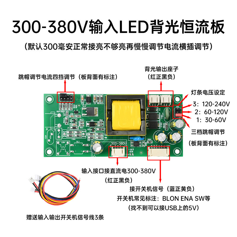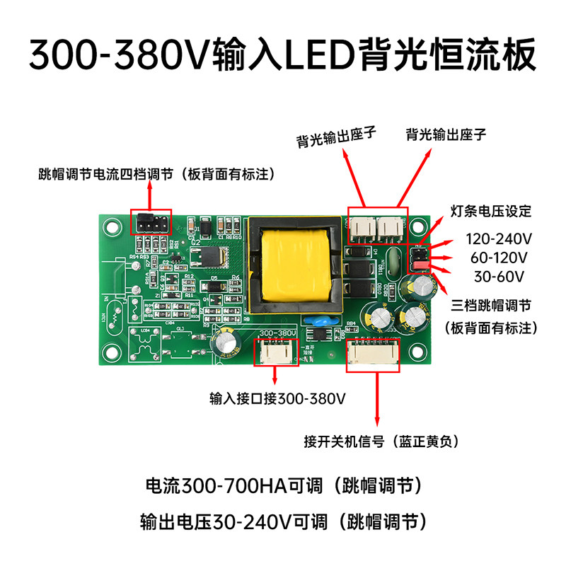 Вход постоянного тока 300-380 В, светодиодная универсальная плата постоянного тока с подсветкой, ЖК-телевизор, универсальная плата драйвера с подсветкой «все в одном»