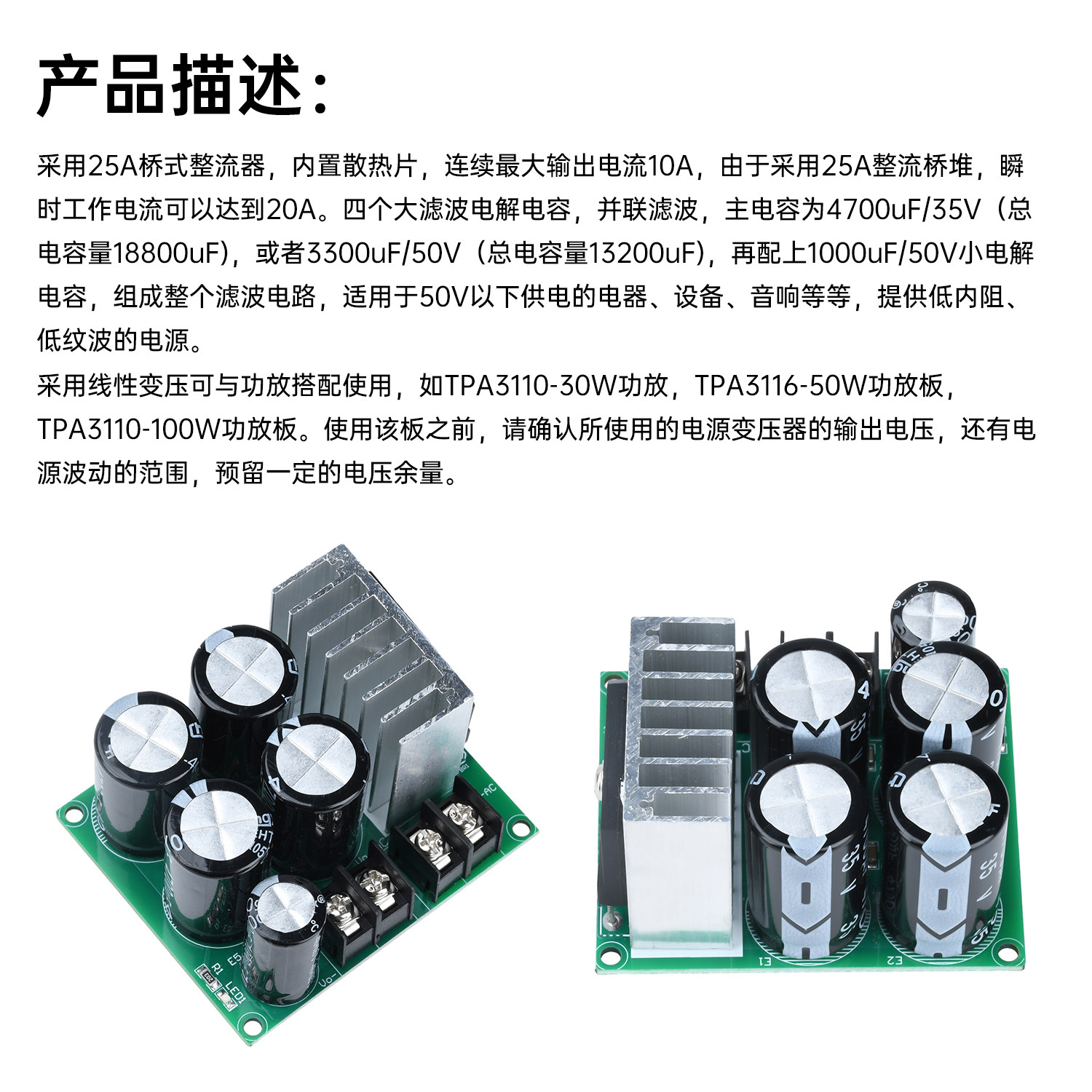 Одиночный модуль питания, плата фильтра выпрямителя, плата нерегулируемого источника питания, одиночная плата питания усилителя мощности, высокий ток 10 А
